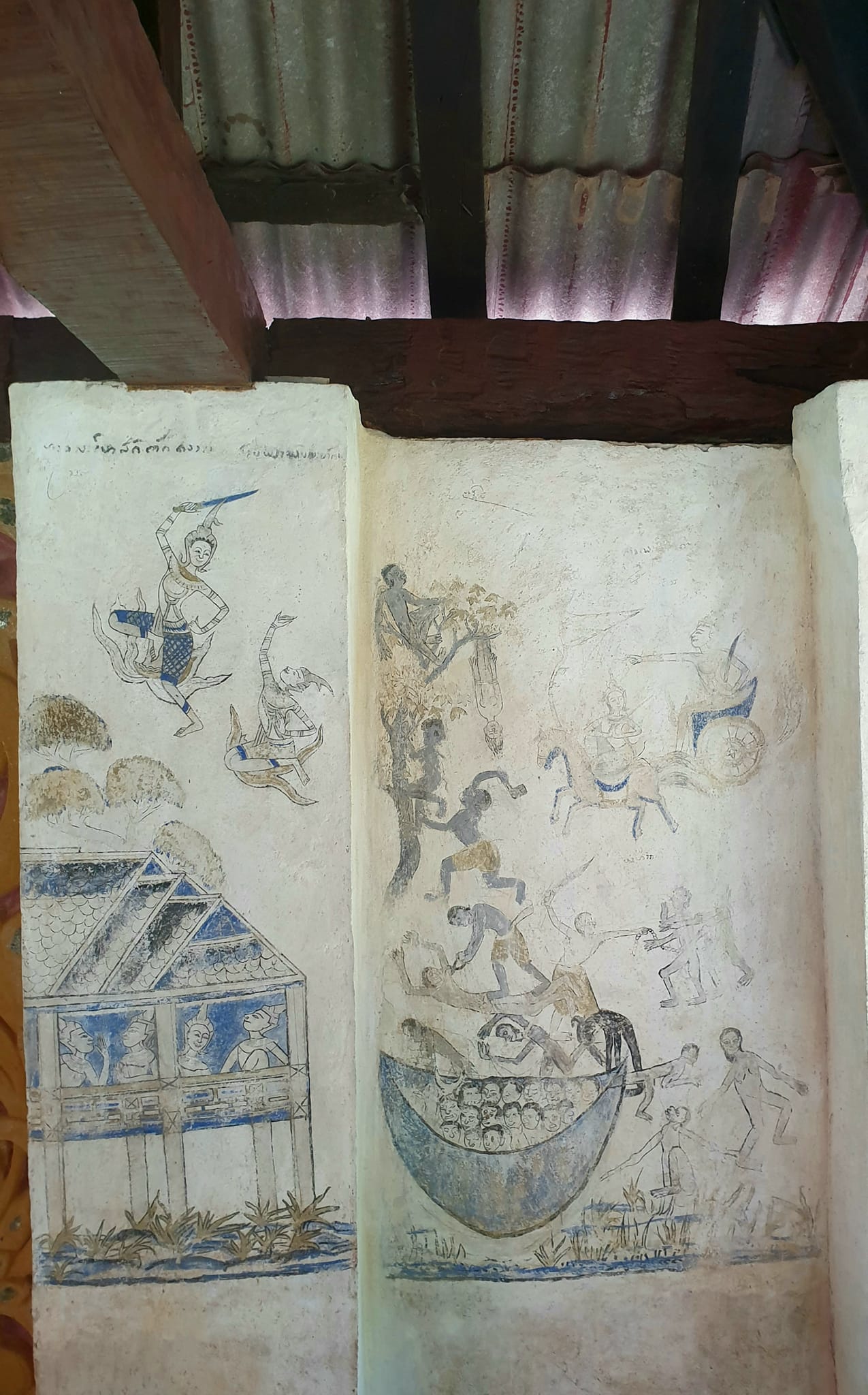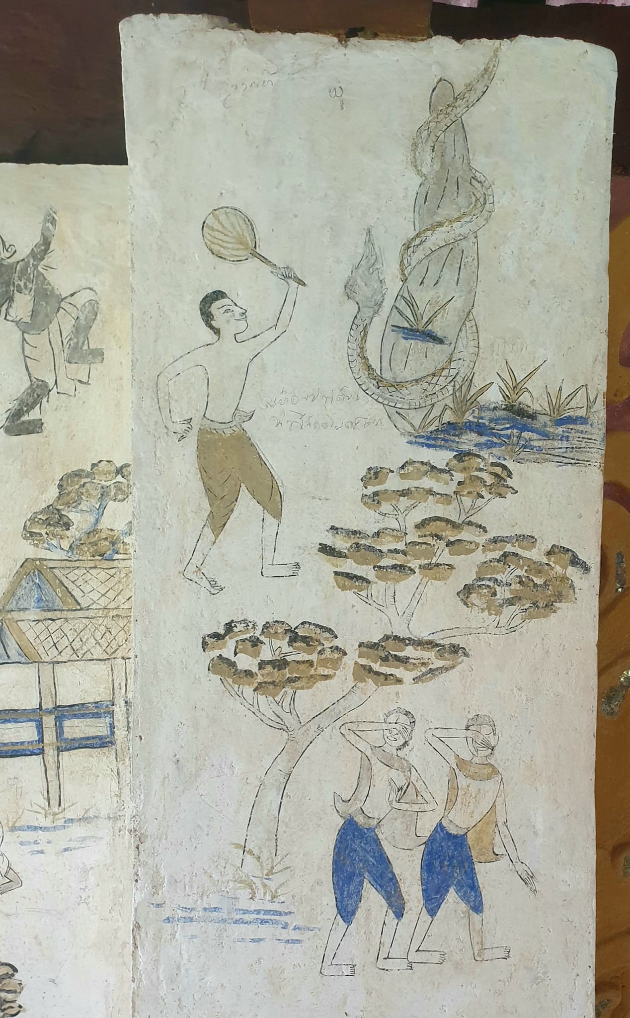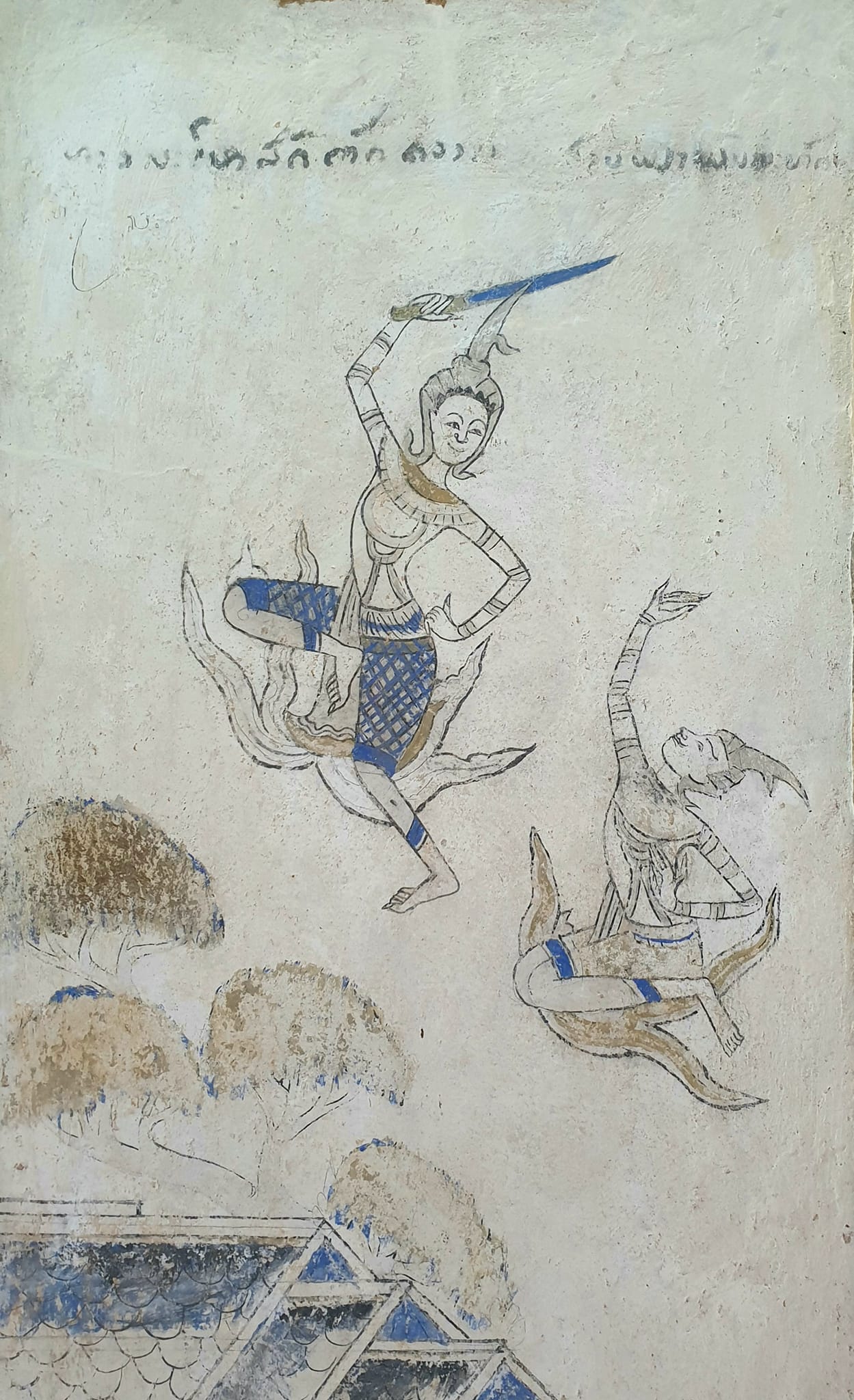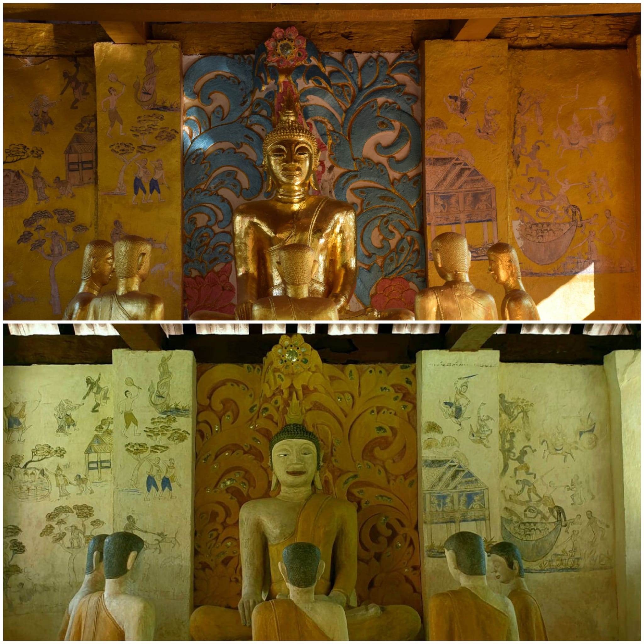 ภาพแสดงเปรียบเทียบก่อนและหลังการอนุรักษ์จิตรกรรมฝาผนัง