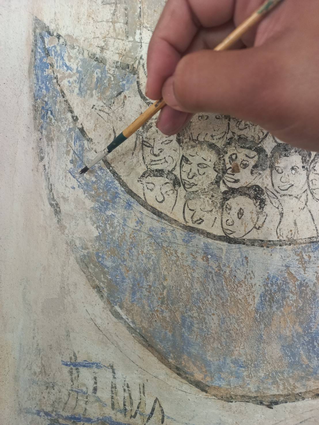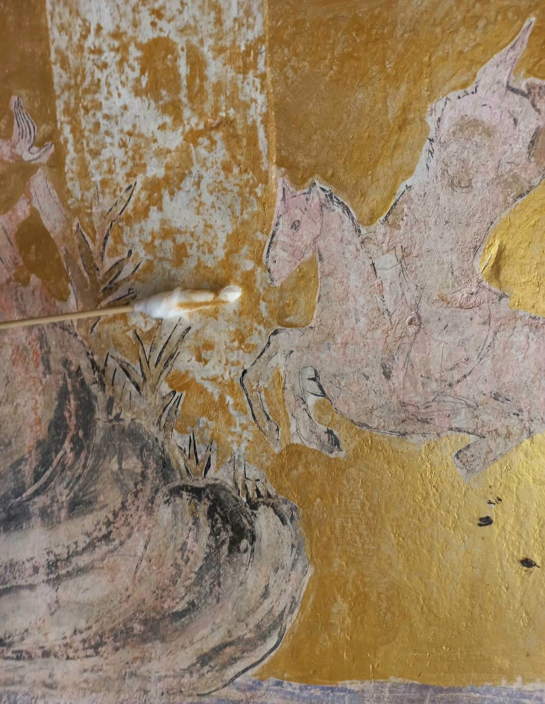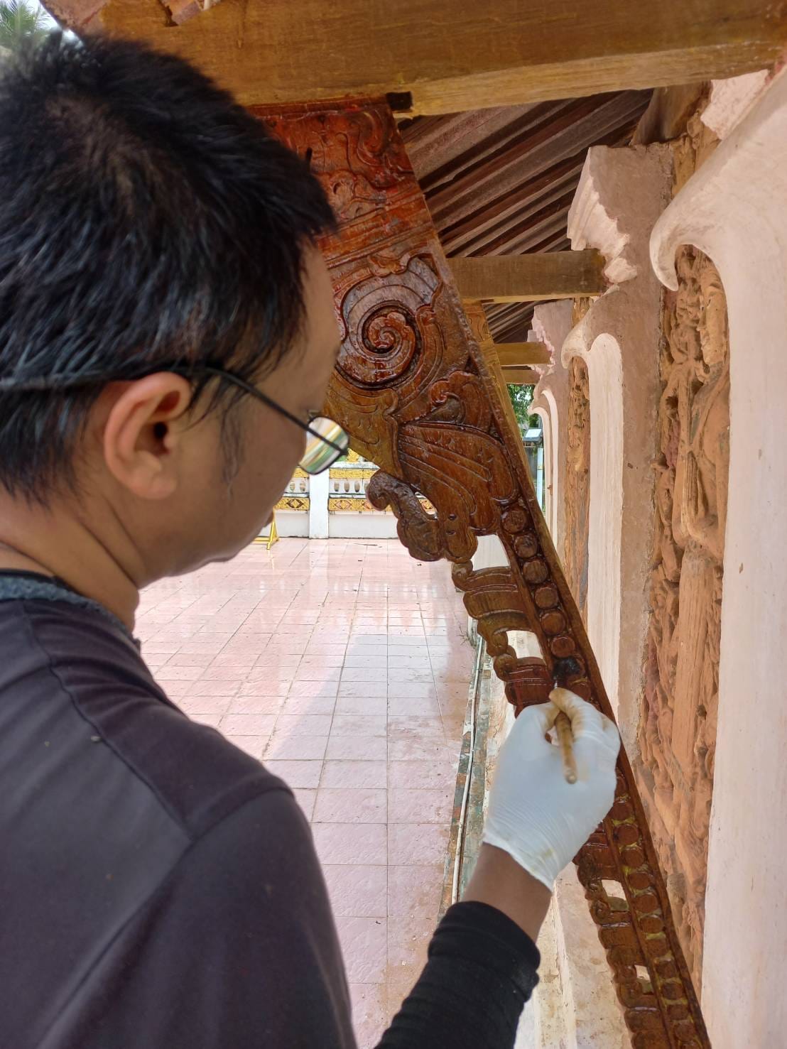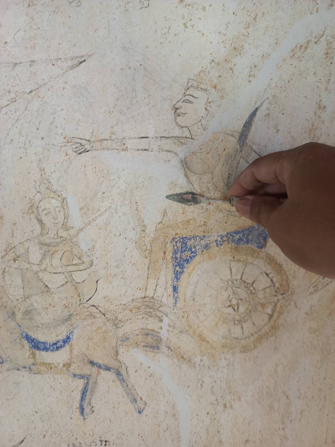 และเสริมความแข็งแรงให้กับชั้นสี ชั้นปูนฉาบ และเขียนสีซ่อมตามหลักการอนุรักษ์