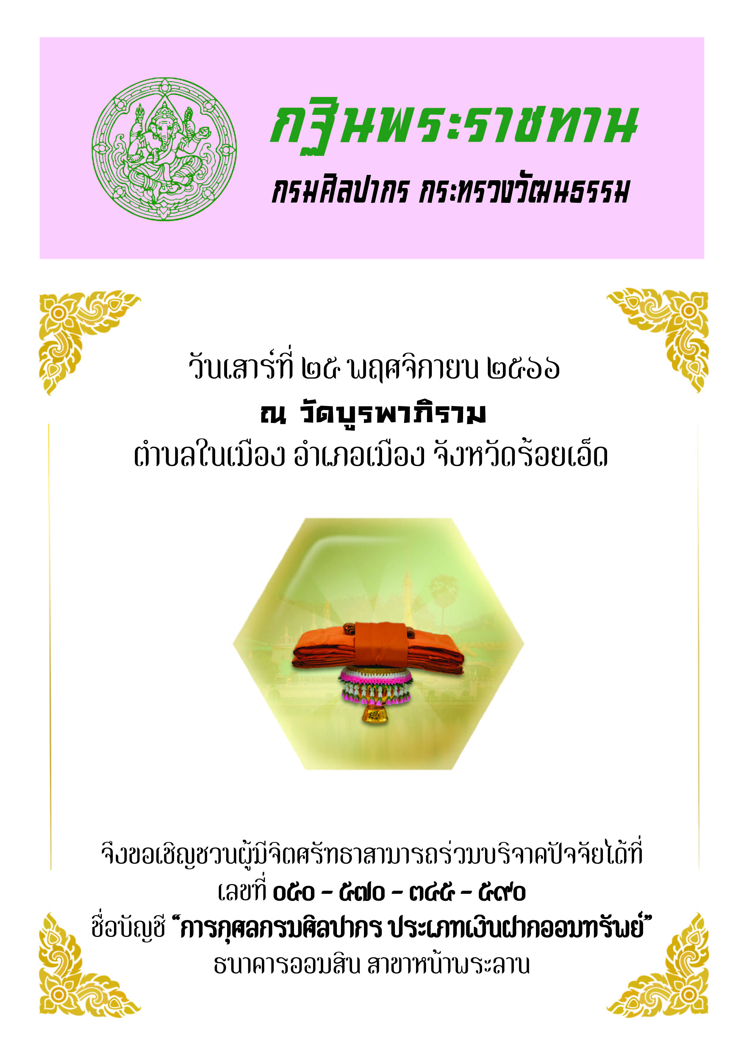กฐินพระราชทาน กรมศิลปากร กระทรวงวัฒนธรรม
