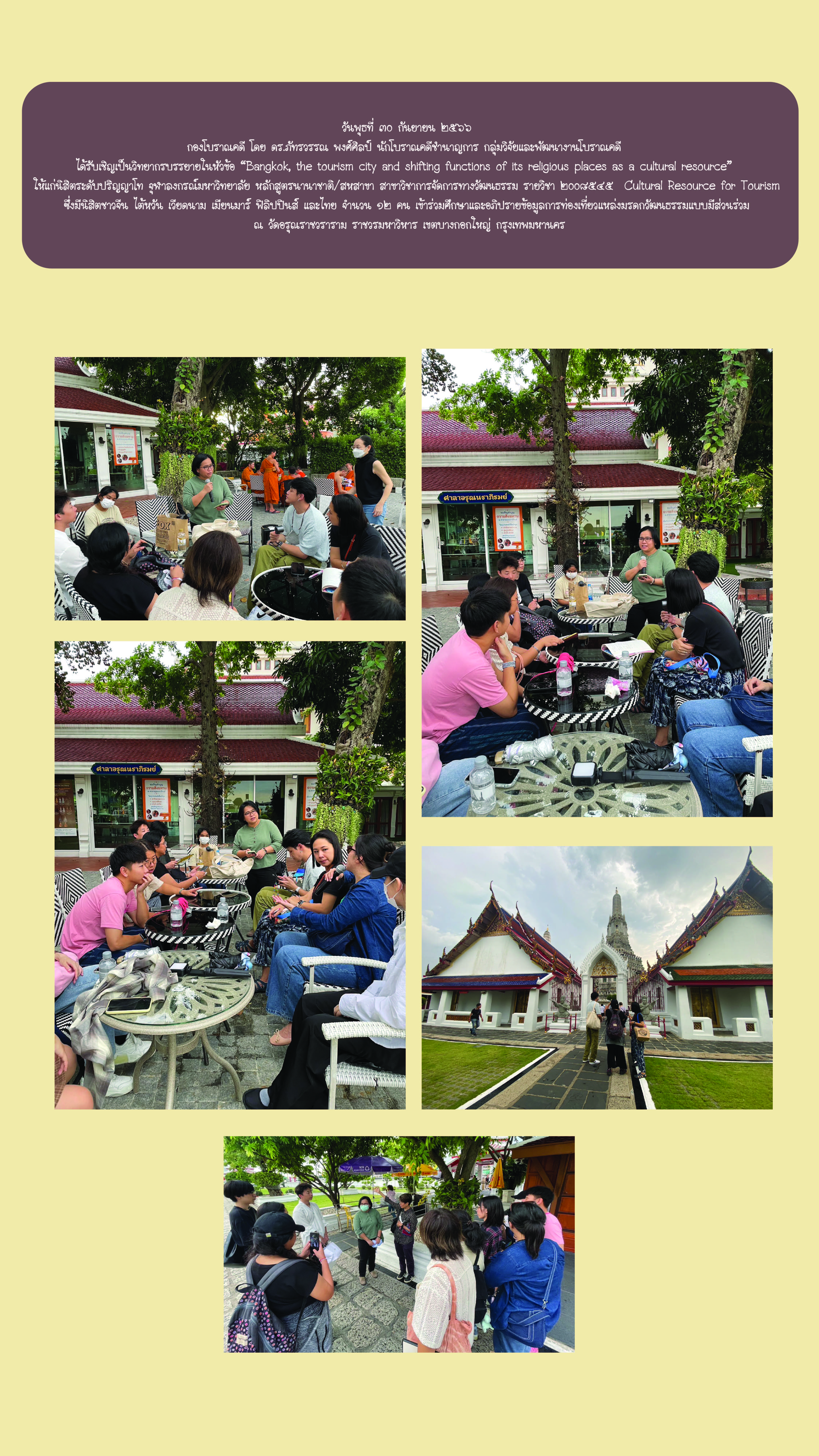 ดร.ภัทรวรรณ พงศ์ศิลป์ นักโบราณคดีชำนาญการ กลุ่มวิจัยและพัฒนางานโบราณคดี ได้รับเชิญเป็นวิทยากรบรรยายในหัวข้อ “Bangkok, the tourism city and shifting functions of its religious places as a cultural resource”