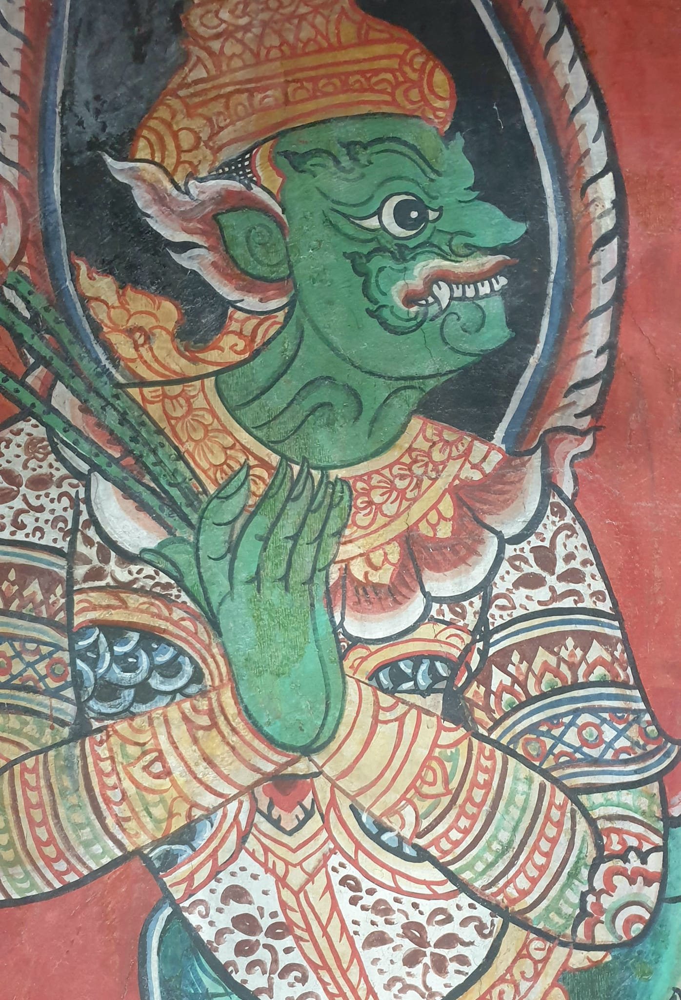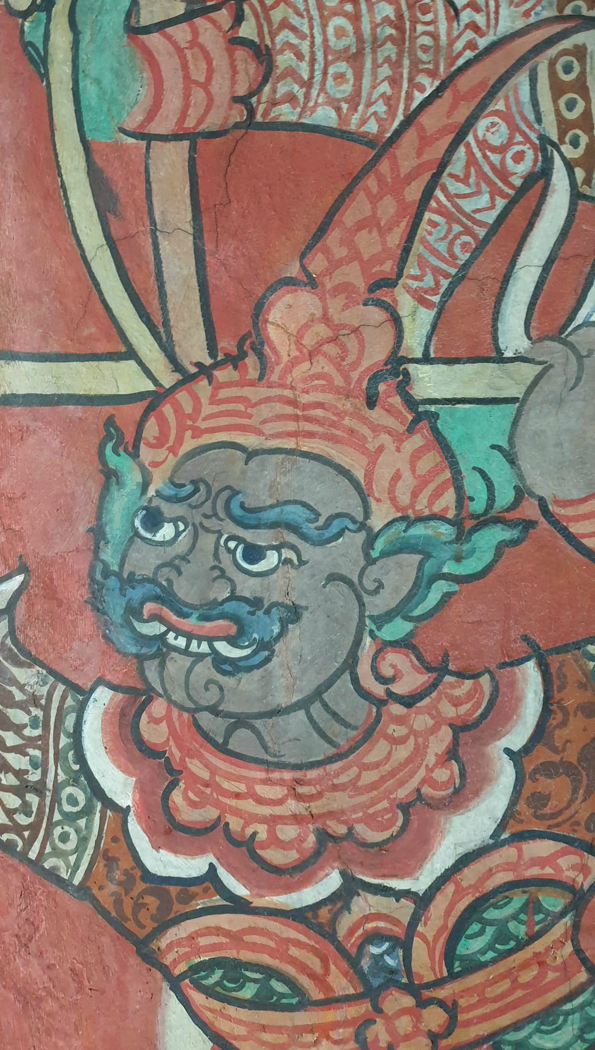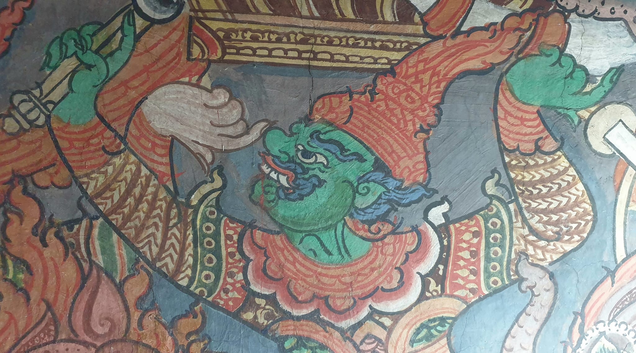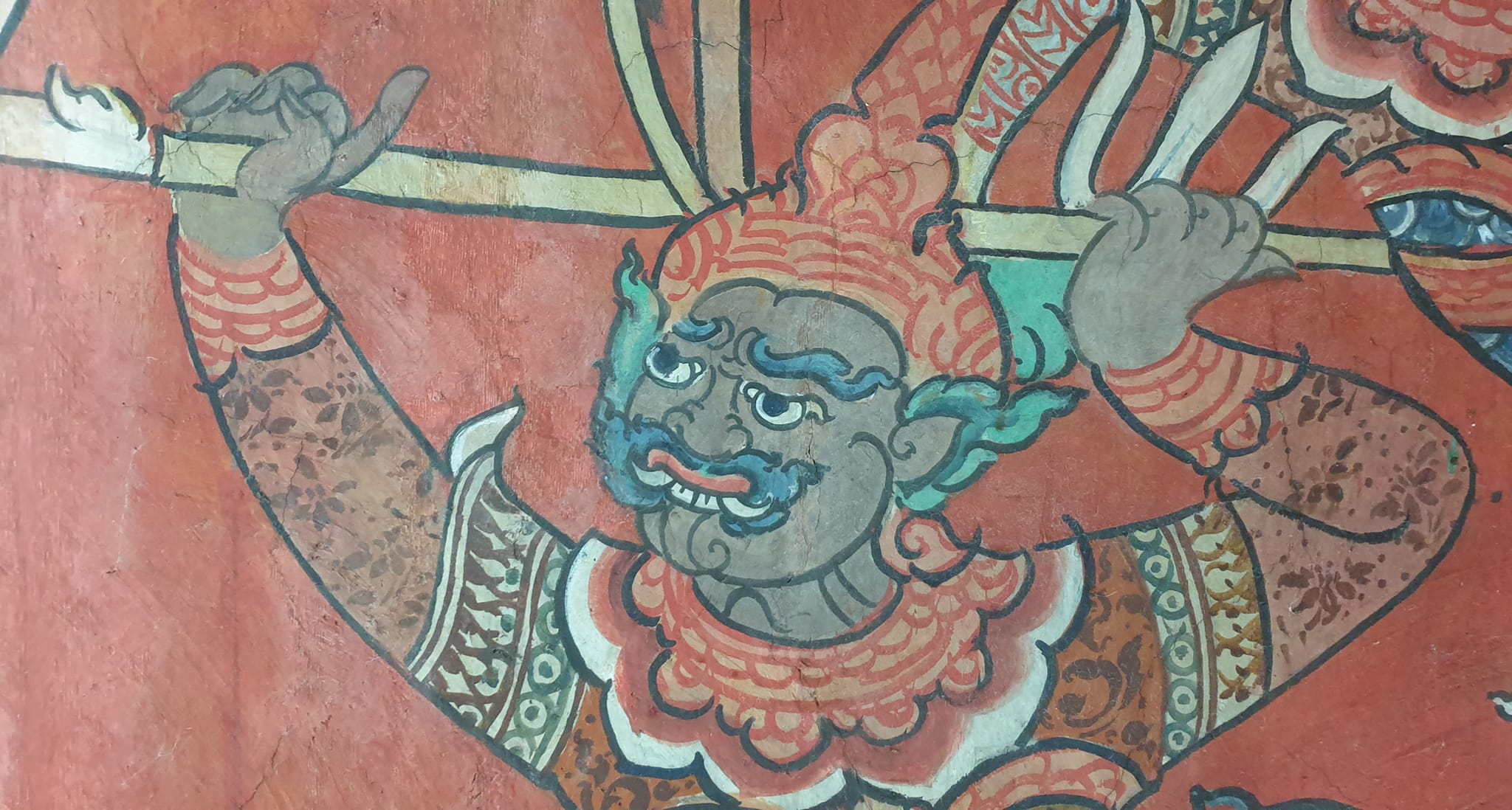 ท้าววสวัตตีมาร และเหล่าบริวาร จิตรกรรมฝาผนังเล่าเรื่องพุทธประวัติ ตอน"มารผจญ"