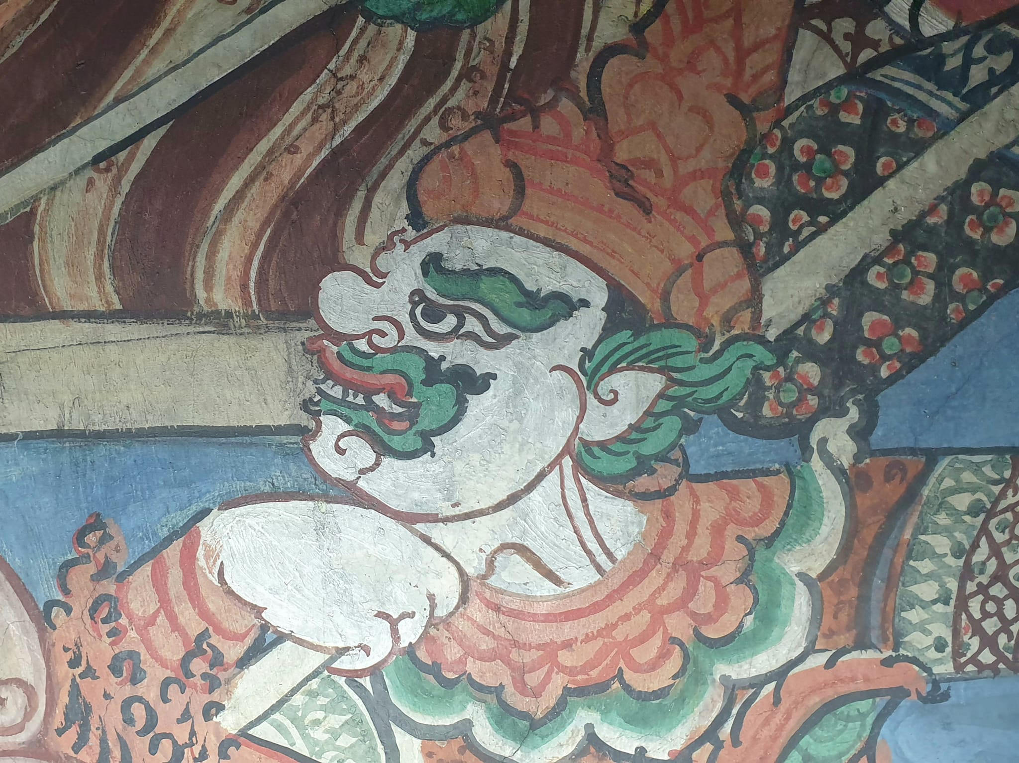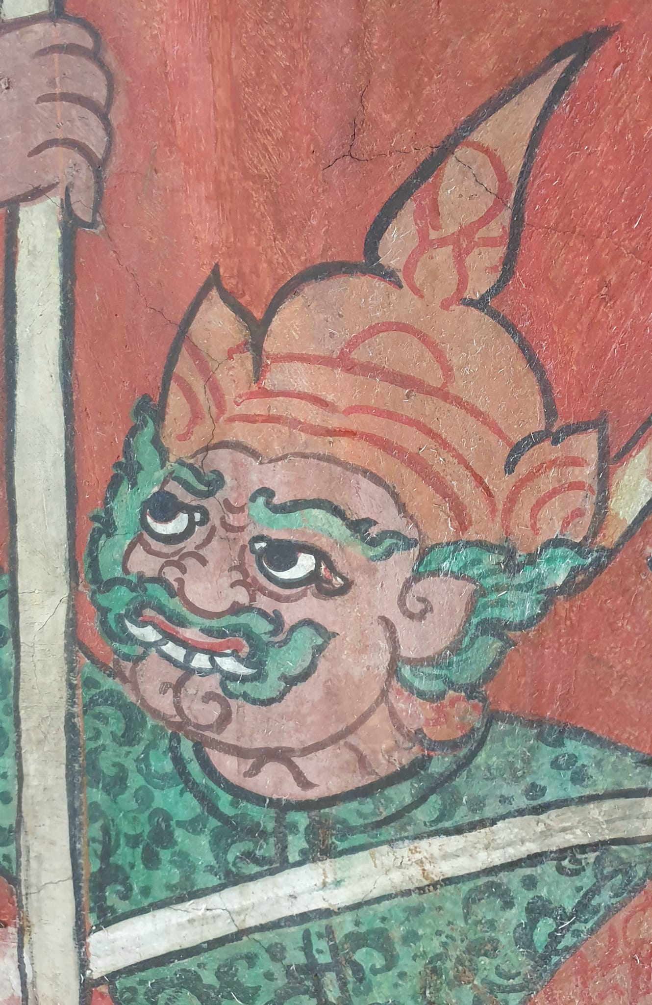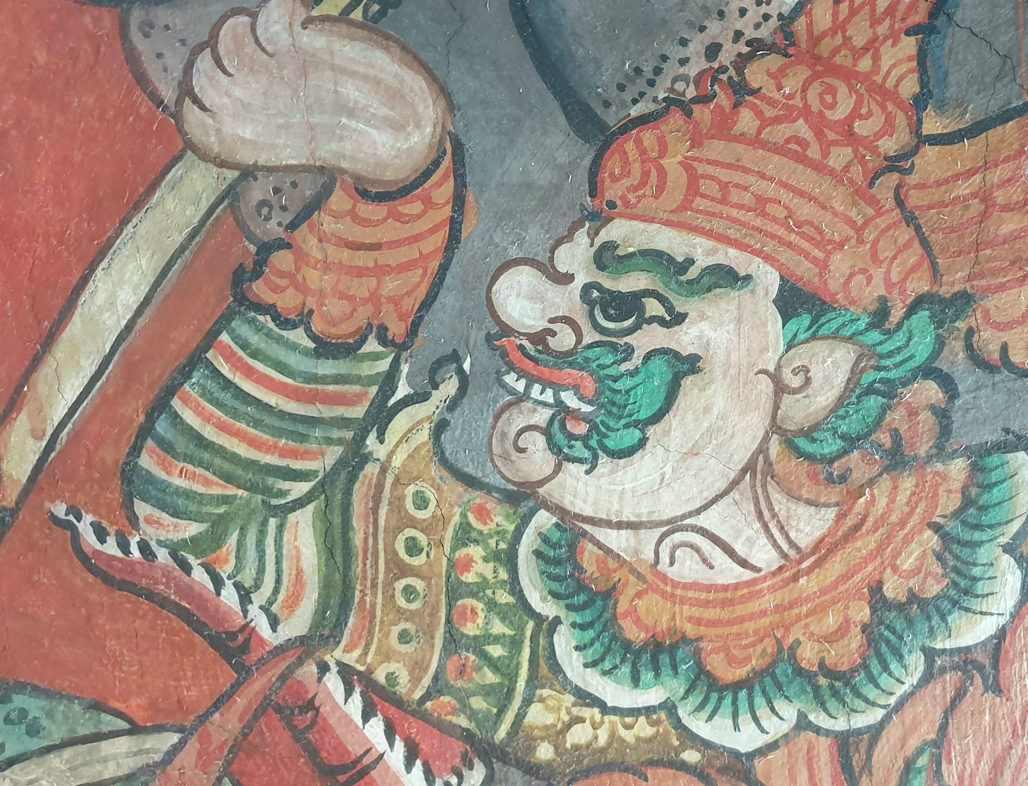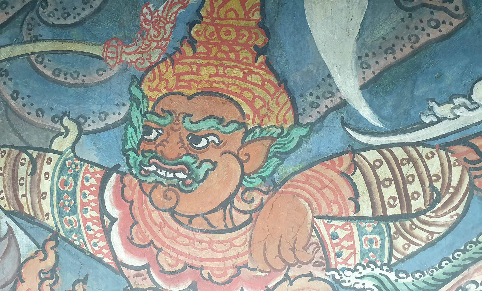 ท้าววสวัตตีมาร และเหล่าบริวาร จิตรกรรมฝาผนังเล่าเรื่องพุทธประวัติ ตอน"มารผจญ"