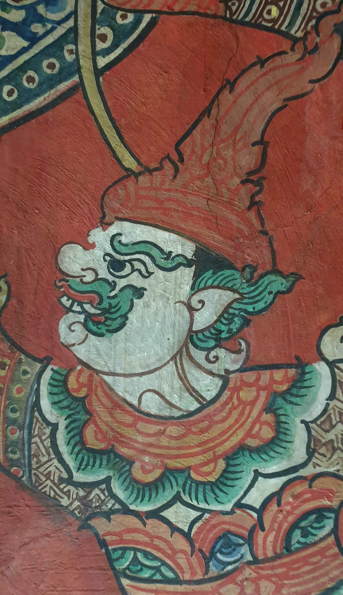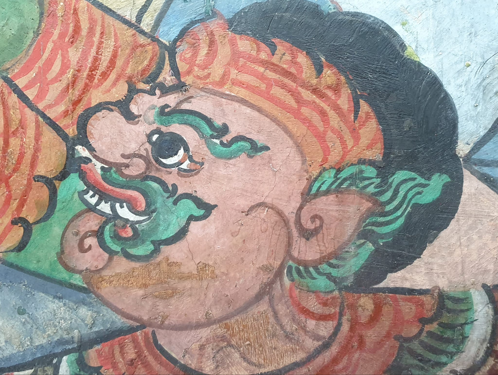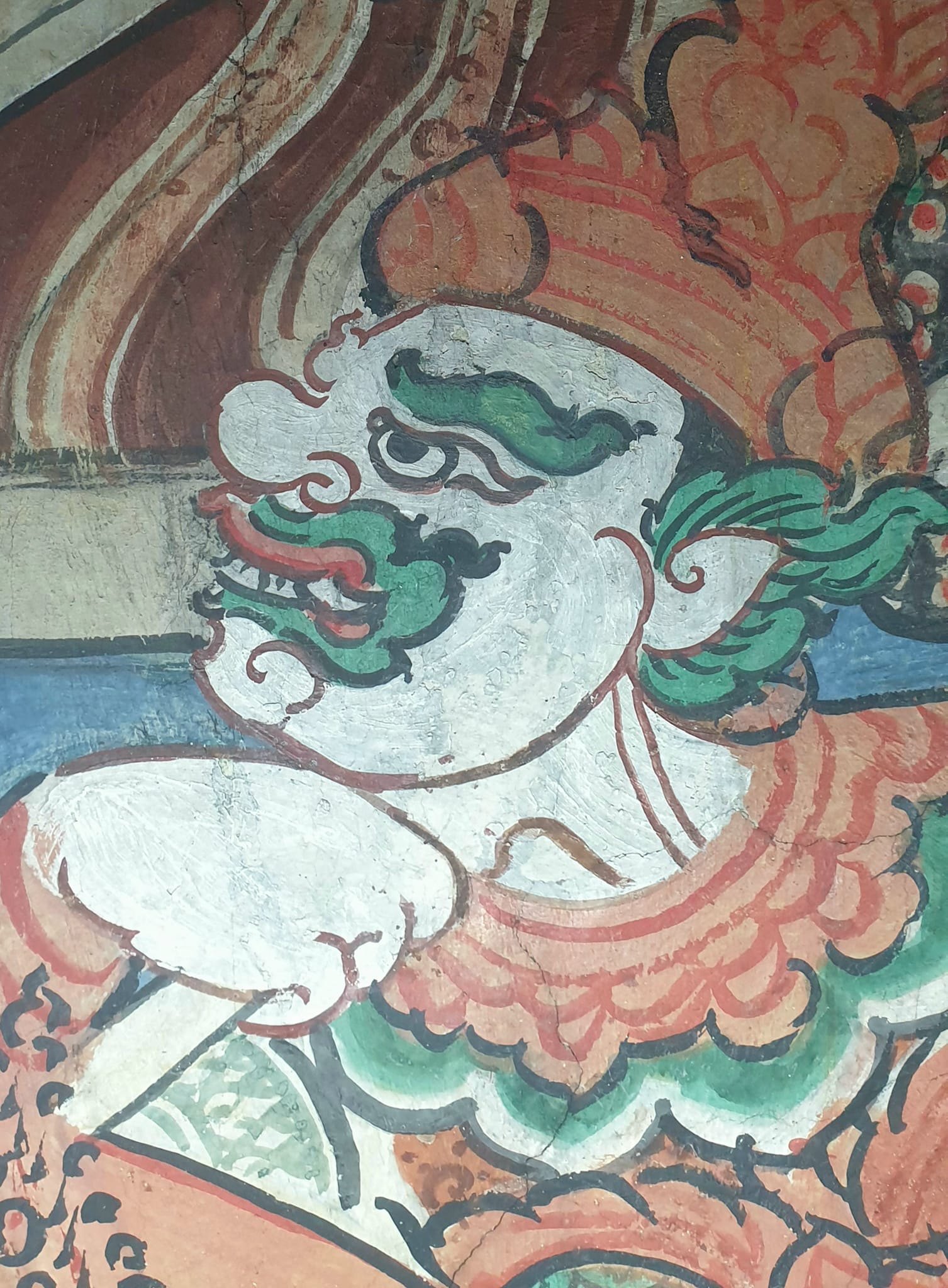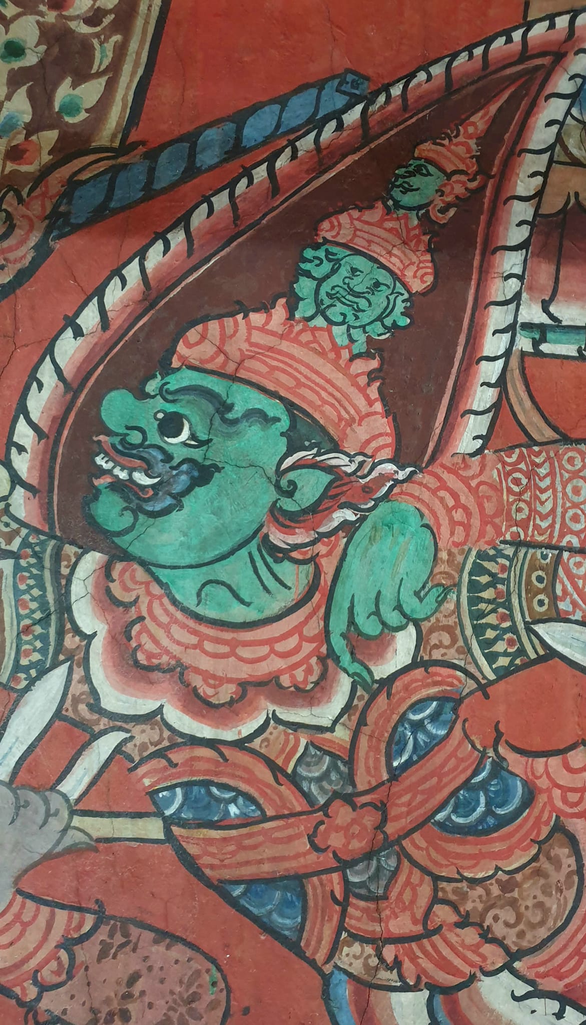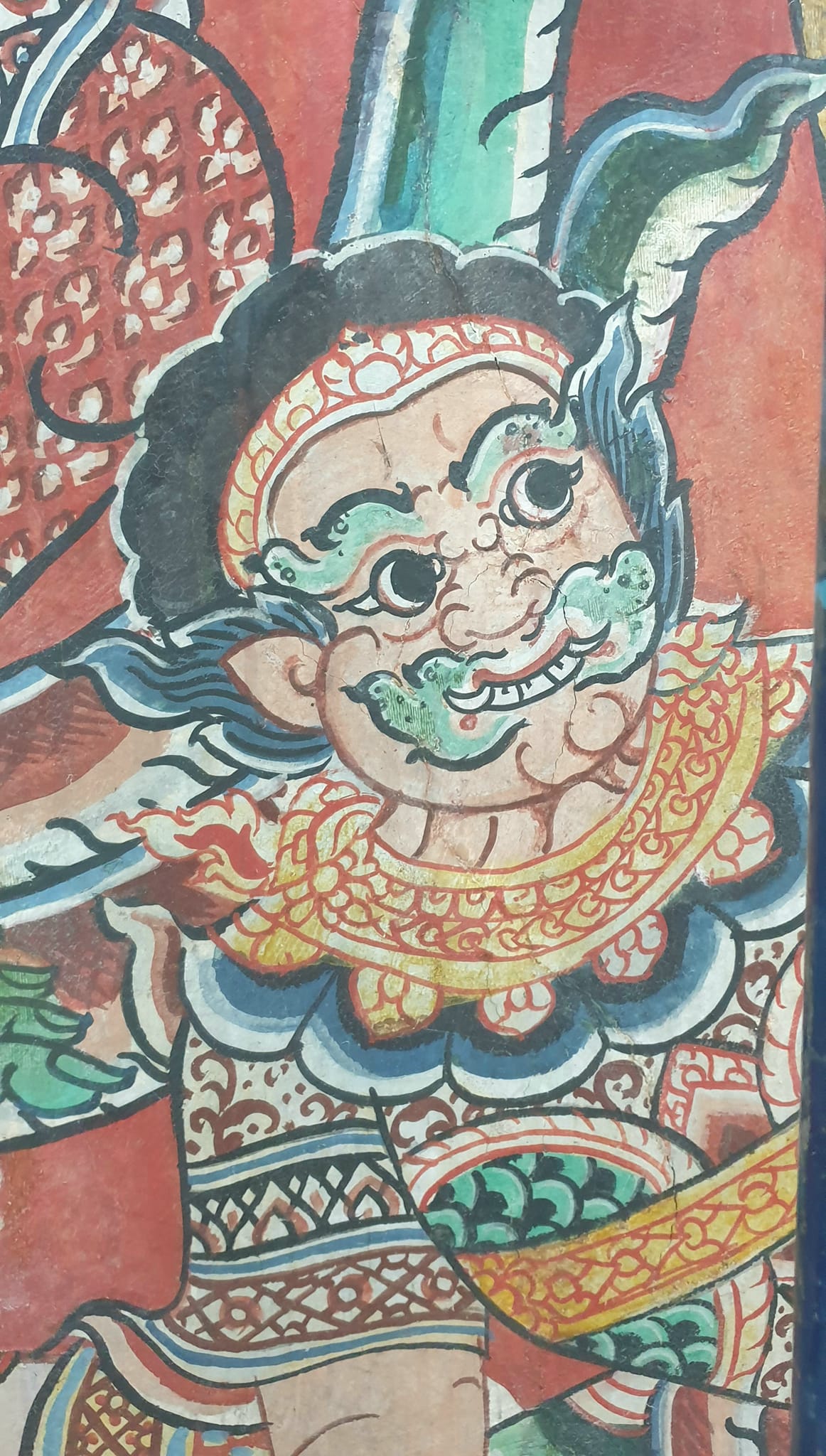ท้าววสวัตตีมาร และเหล่าบริวาร จิตรกรรมฝาผนังเล่าเรื่องพุทธประวัติ ตอน"มารผจญ"
