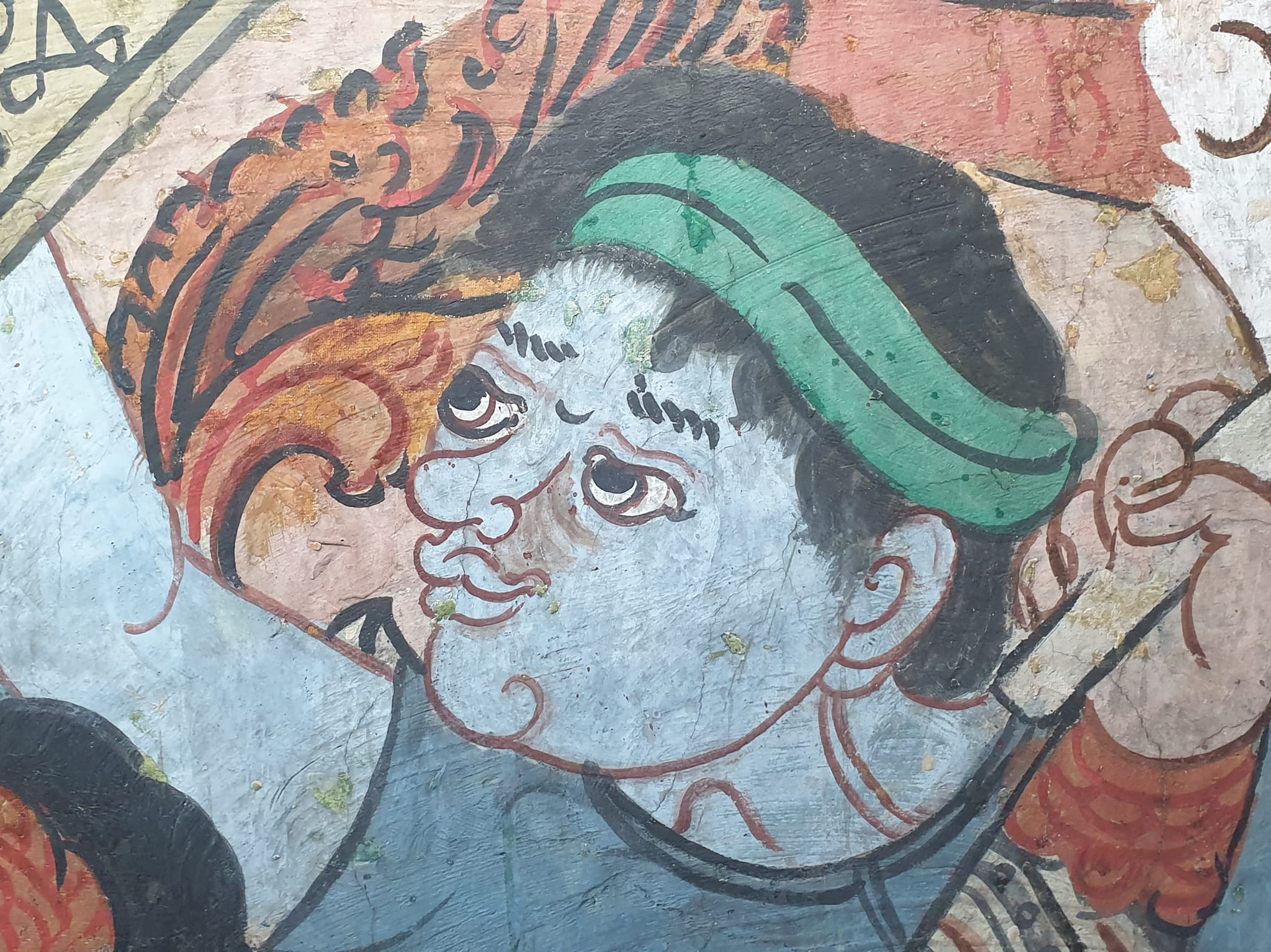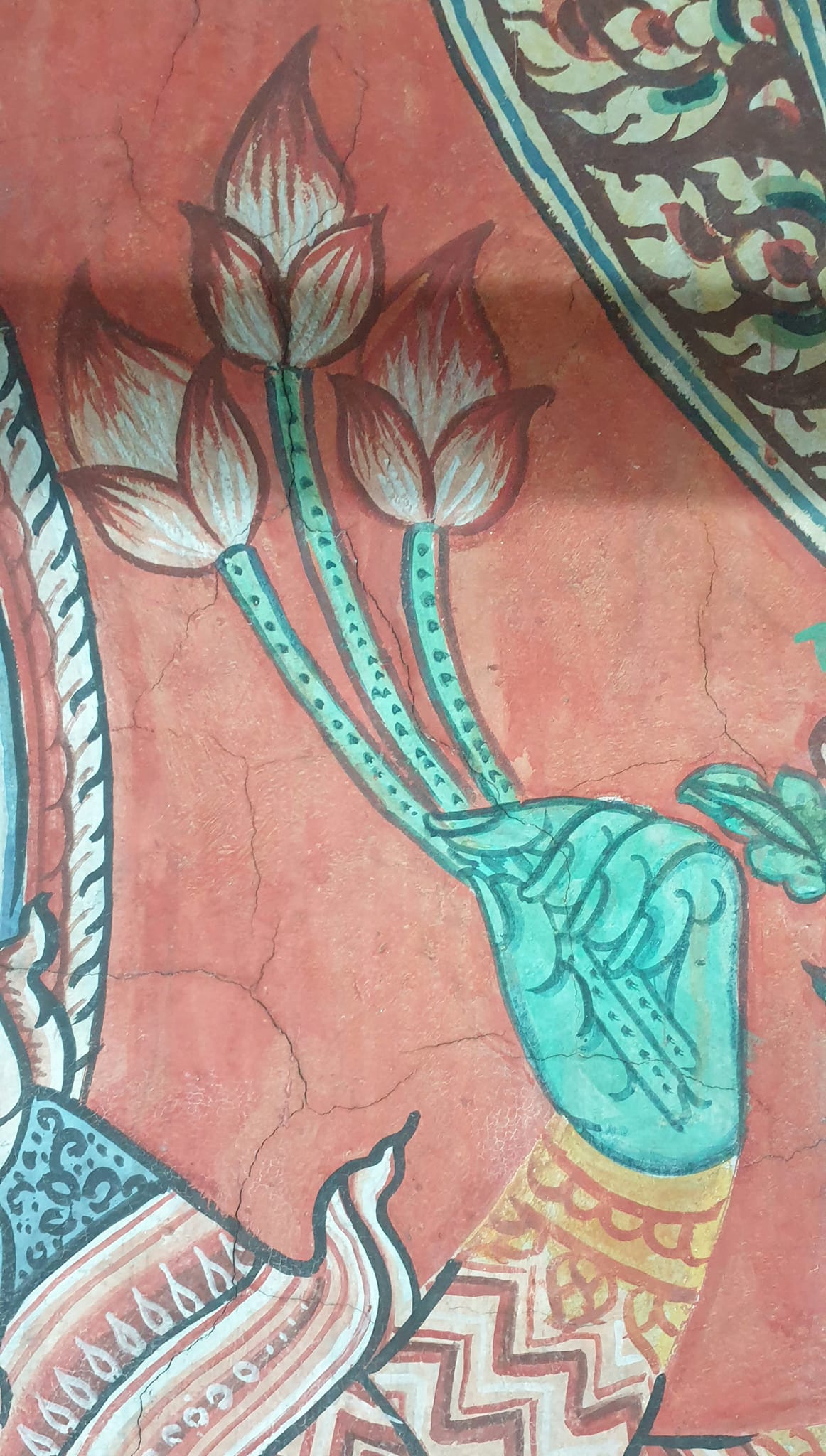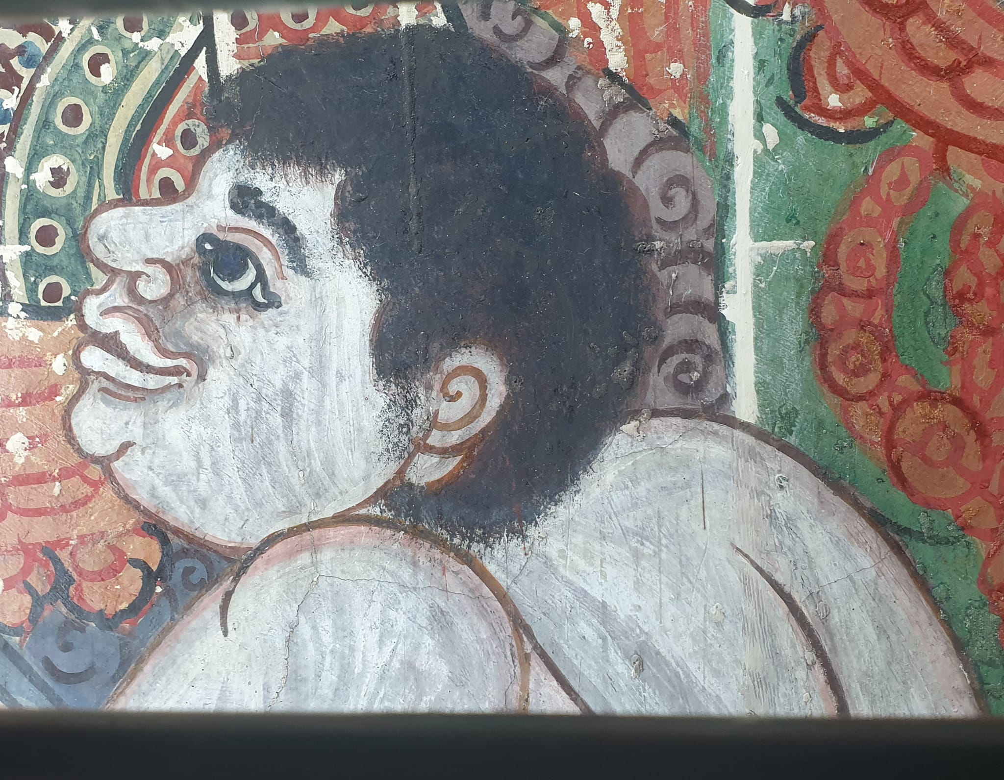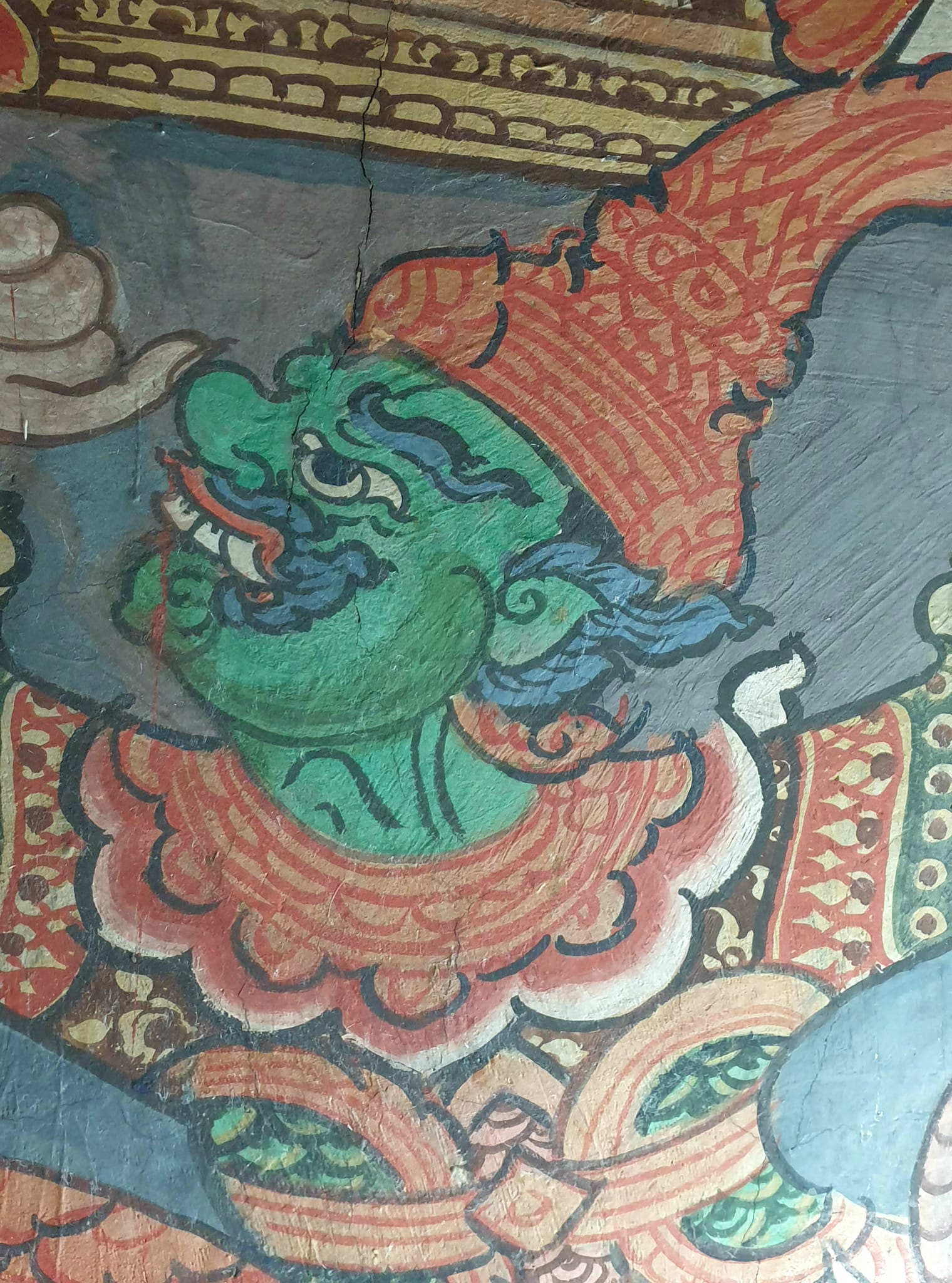 ท้าววสวัตตีมาร และเหล่าบริวาร จิตรกรรมฝาผนังเล่าเรื่องพุทธประวัติ ตอน"มารผจญ"
