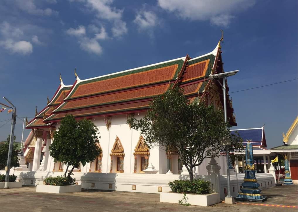 ผนังด้านหลังองค์พระประธาน ภายในอุโบสถ วัดบางขนุน ต.บางขนุน อ.บางกรวย จ.นนทบุรี