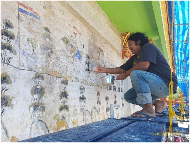 ลงพื้นที่ดำเนินงานอนุรักษ์ภาพจิตรกรรมฝาผนัง ตามหลักวิชาการกรมศิลปากร ณ อุโบสถวัดสุทธิวนาราม ตำบลหนองฉิม อำเภอเนินสง่า จังหวัดชัยภูมิ