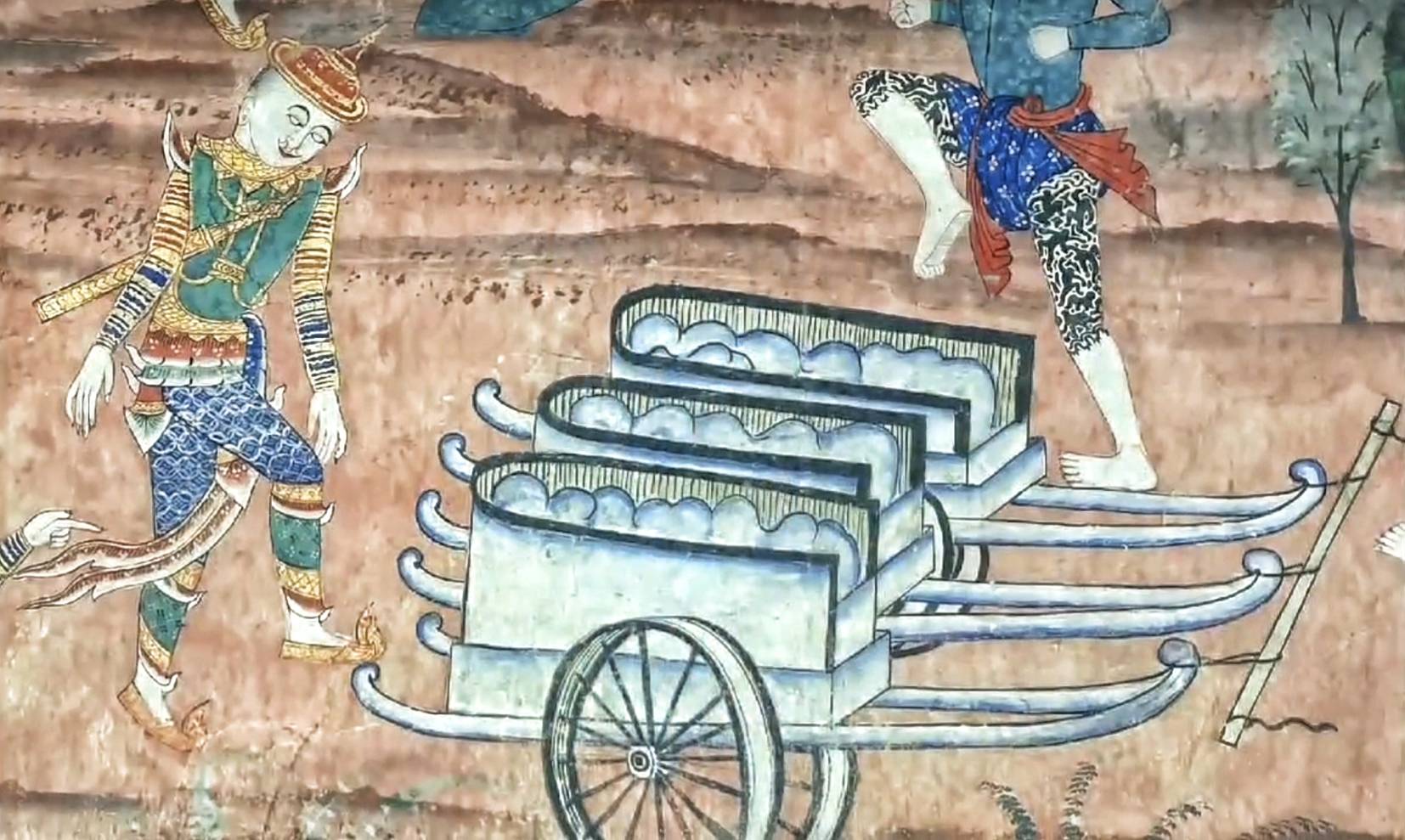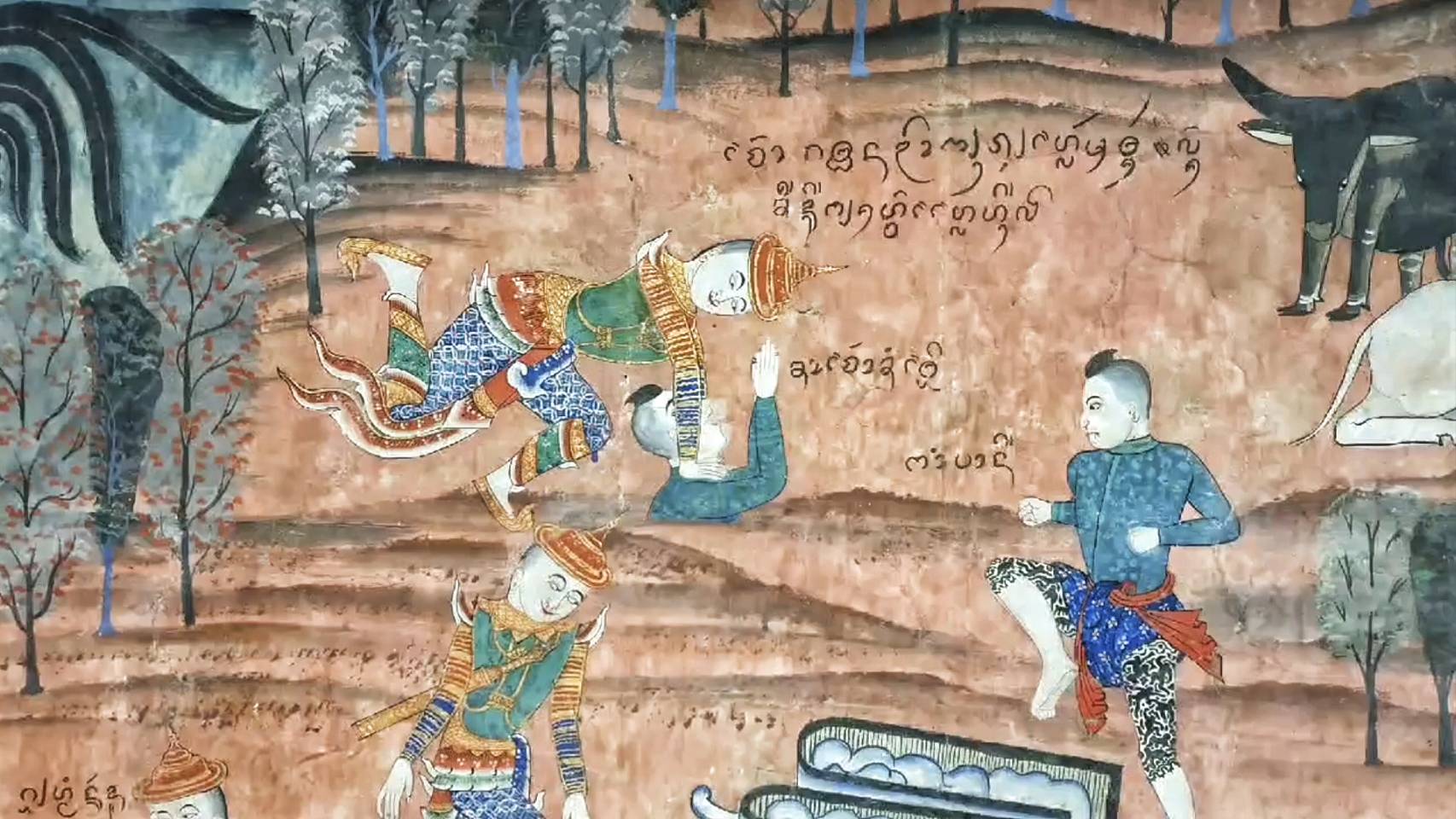 (เรื่องราว "คัทธนกุมารชาดก" จิตรกรรมฝาผนังมุขด้านทิศเหนือ วัดภูมินทร์ ตำบลในเวียง อำเภอเมือง จังหวัดน่าน)