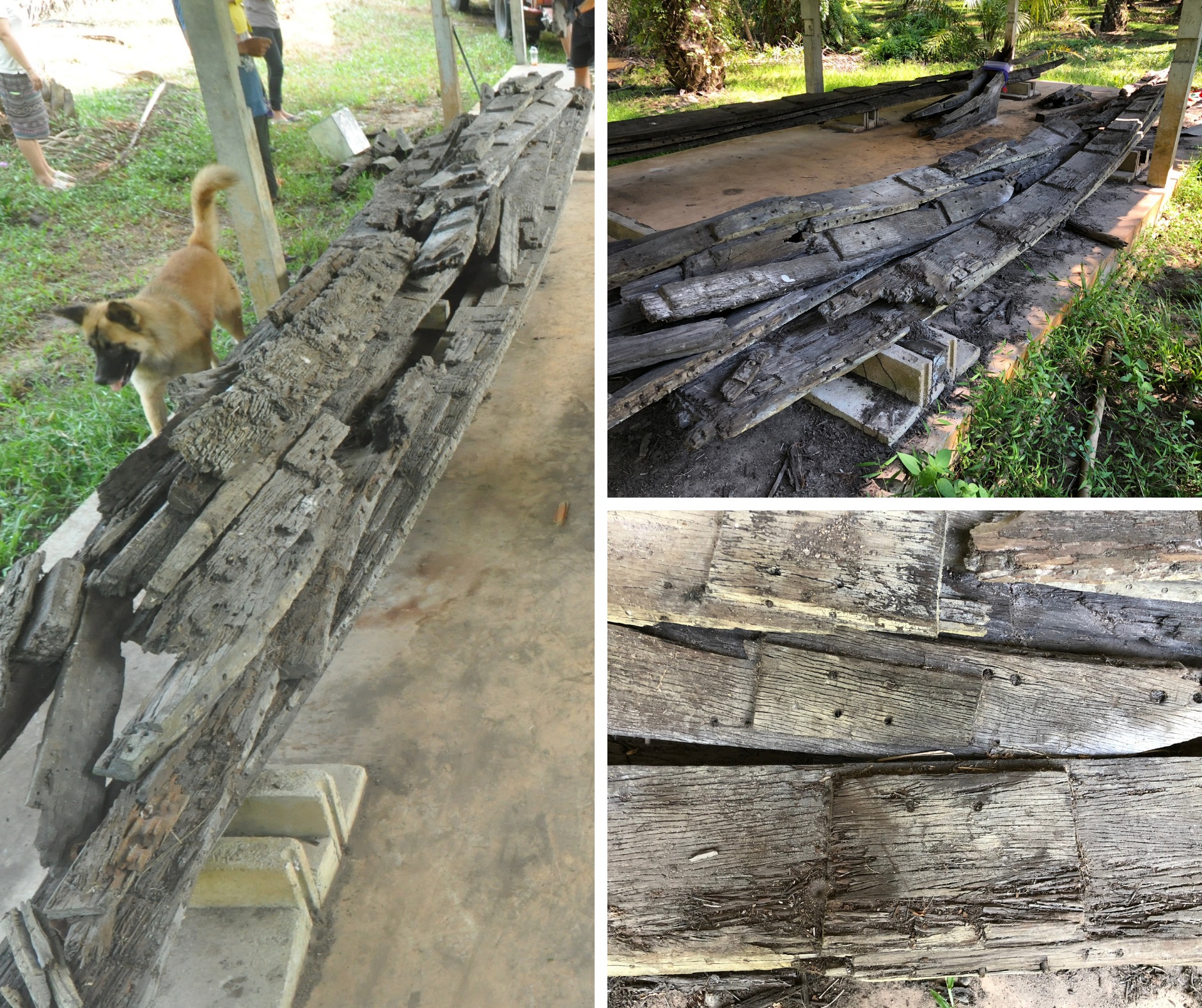 จากการตรวจสอบพบว่า บริเวณหลังบ้านของ นางพรพิมล เป็นพื้นที่สวนปาล์ม มีการขุดสระน้ำสำหรับใช้ภายในสวน ภายในมีซากของไม้เรือโบราณถูกเก็บรักษาอยู่ภายในโรงเปิดโล่งมีหลังคาคลุม ซากเรือดังกล่าวประกอบด้วยไม้ ๘๔ ชิ้น เป็นไม้กระดานขนาดยาว ไม้ที่ทำเป็นทรงแหลมสำหรับหัวเรือ และเศษไม้ที่ไม่สามารถระบุส่วนได้