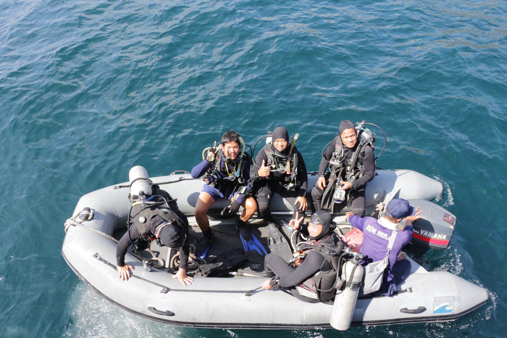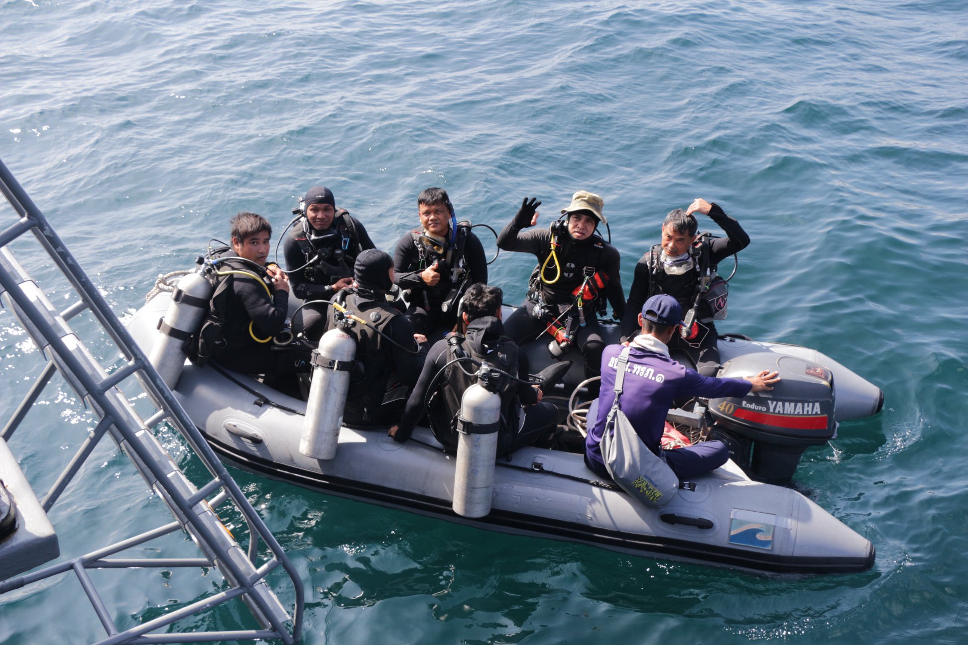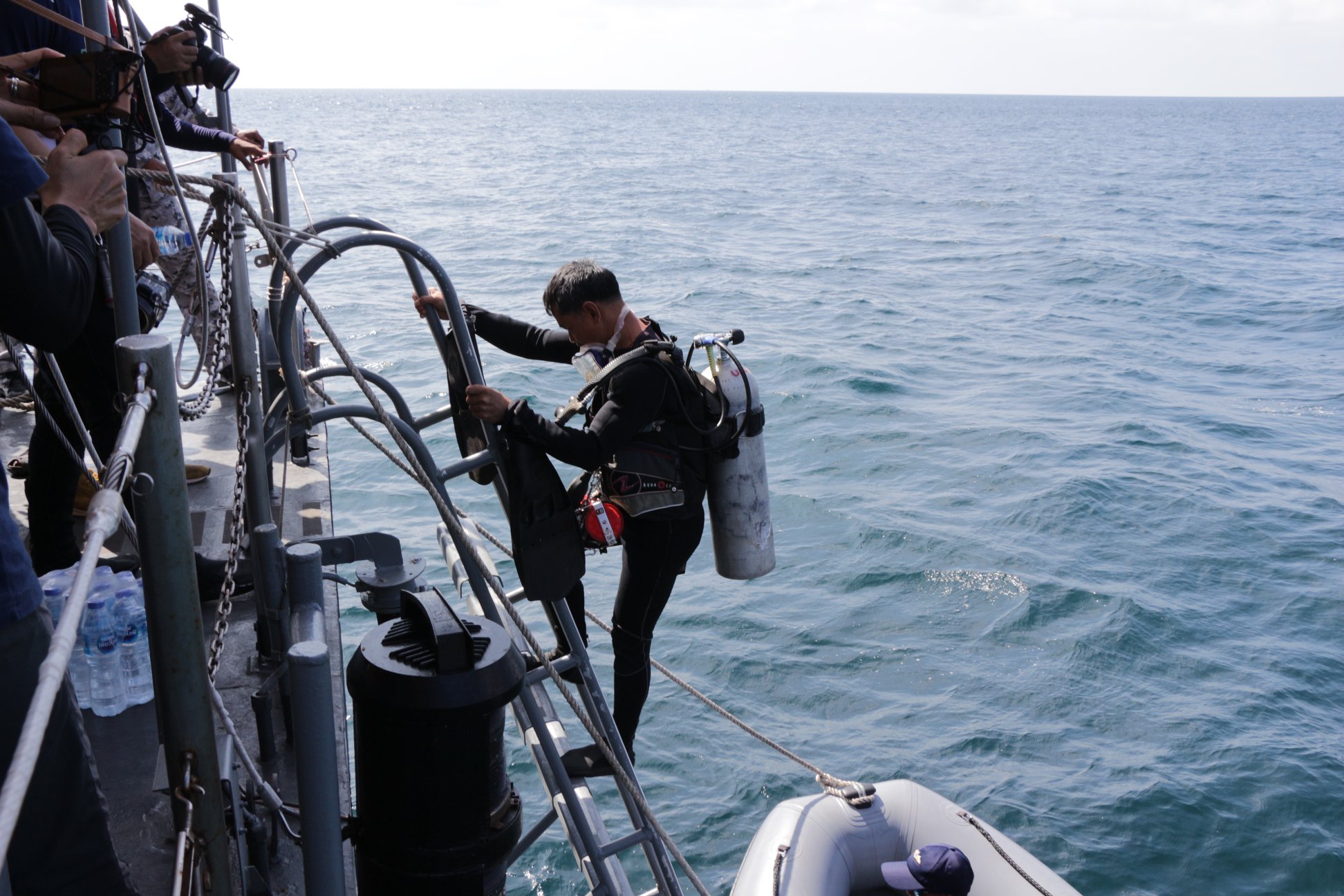 ทันทีที่สิ้นเสียงประกาศนักดำน้ำสำรวจทุกคนได้เตรียมชุดดำน้ำ และวางแผนการทำงานขั้นสุดท้าย โดยแบ่งชุดสำรวจออกเป็น ๓ ชุดด้วยกัน ชุดแรกนั้นมุ่งไปที่การหาจุดที่พบวัตถุรูปทรงคล้ายปืนใหญ่โบราณพร้อมแบ่งคนไปสำรวจด้านทิศเหนือ ชุดที่สองนั้นมุ่งสำรวจไปทางทิศใต้ สำหรับชุดที่สามนั้นเป็นชุดสนับสนุนจากทัพเรือ เมื่อเข้าใจการทำงานกันอย่างดีแล้ว ชุดดำชุดที่หนึ่งทยอยไต่ลงจากท้ายเรือหลวงไปที่เรือยางที่ทางทัพเรือภาคที่ ๓ เตรียมมาสนับสนุน และแล่นไปตามคลื่นเข้าหาที่หมาย ในเวลาเพียงไม่นานทีมงานที่เหลือบนเรือก็เห็นทุ่นสัญญาณลอยขึ้นสู่ผิวน้ำ ซึ่งแน่นอนว่านั้นหมายถึงการพบวัตถุต้องสงสัยแล้ว เมื่อทราบดังนั้นชุดดำที่เหลือจึงไม่รอช้าปืนลงเรือยางเพื่อเข้าสู่ที่หมายเป็นลำดับต่อไป