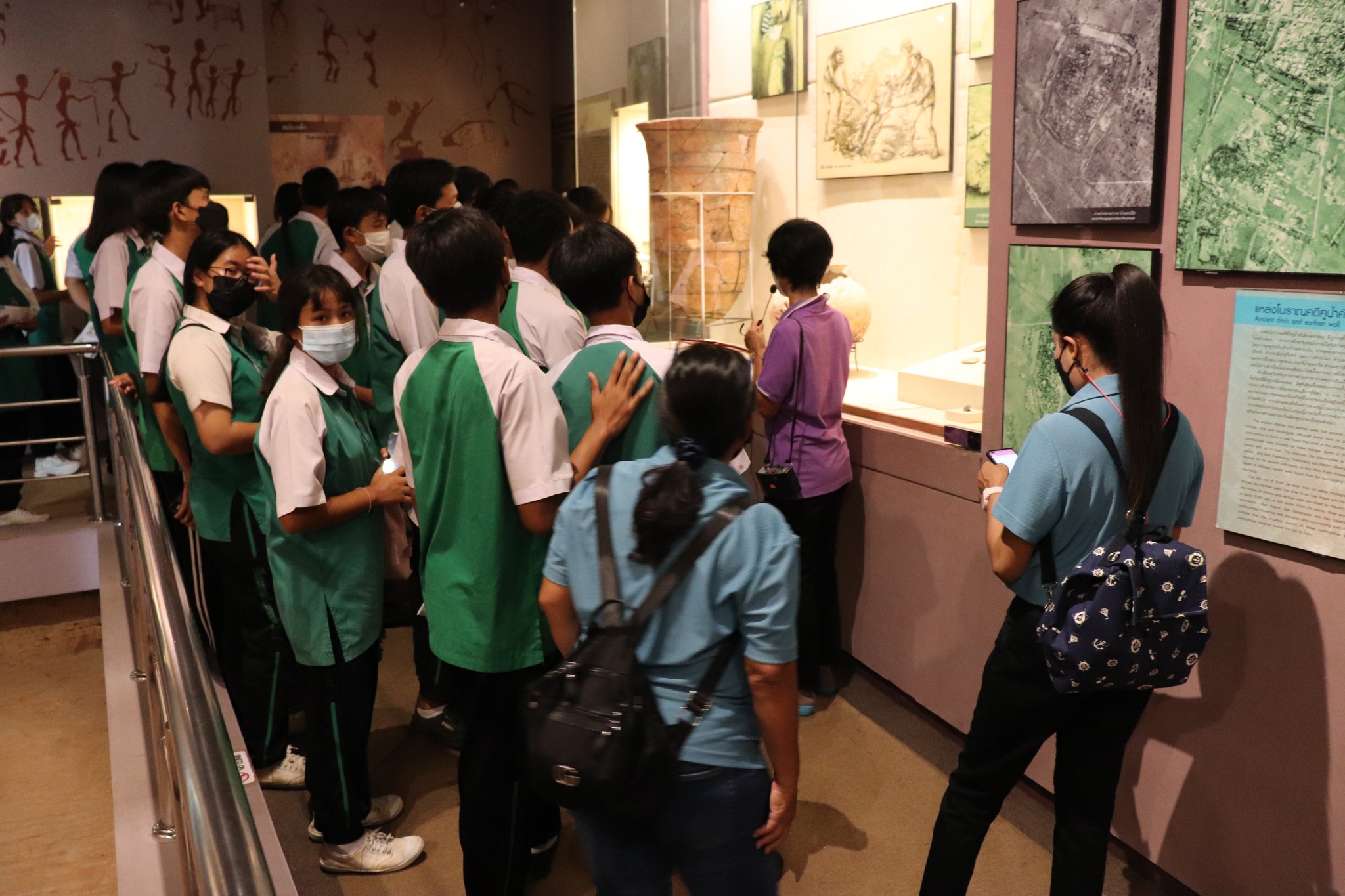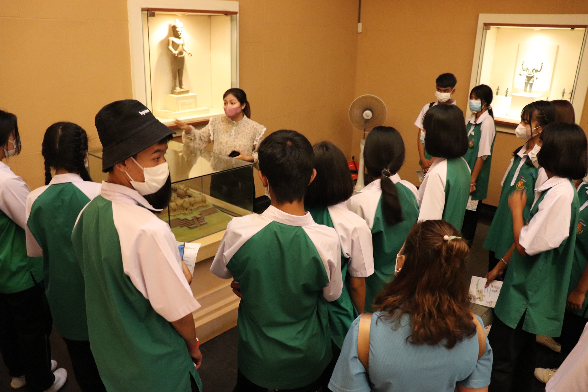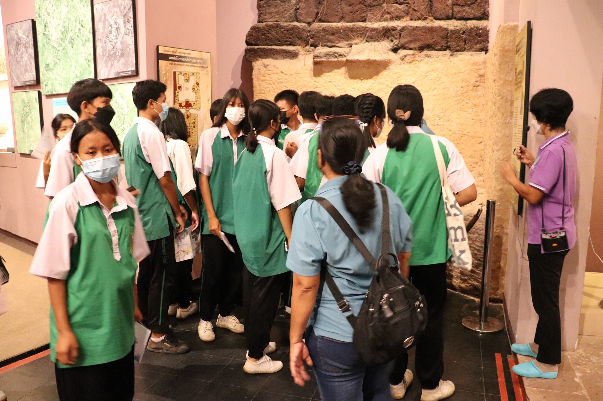 วันเสาร์ที่ ๓ กันยายน พ.ศ. ๒๕๖๕ เวลา ๐๙.๐๐ น. นักเรียนชั้นมัธยมศึกษาปีที่ ๔/๑ และ ๔/๒ โรงเรียนท่าตูมประชาเสริมวิทย์ ตำบลท่าตูม อำเภอท่าตูม จังหวัดสุรินทร์ จำนวน ๕๐ คน คุณครูจำนวน ๑๕ คน เข้าเยี่ยมชมพิพิธภัณฑสถานแห่งชาติ สุรินทร์ โดยแบ่งการบรรยายนำชมออกเป็น ๒ กลุ่มย่อย เพื่อป้องกันการแพร่ระบาดของเชื้อโควิด - ๑๙ อย่างเคร่งครัด โดยมีนางสาวอาภาภรณ์ เปล่งปลั่งศรี นักวิชาการวัฒนธรรม และนางถนอม หลวงกลาง พนักงานประจำห้อง ให้การต้อนรับและบรรยายนำชม