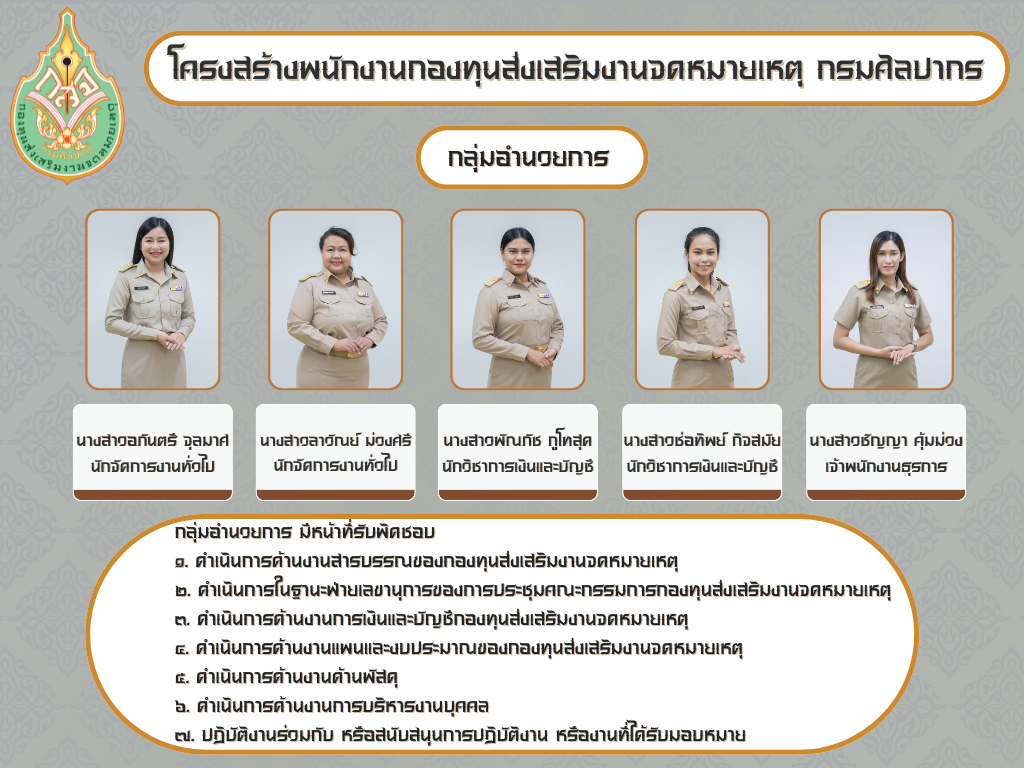 | 1 | คณะกรรมการกองทุนส่งเสริมงานจดหมายเหตุ กรมศิลปากร. | |