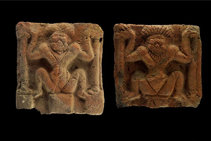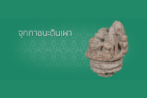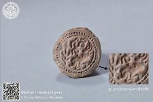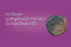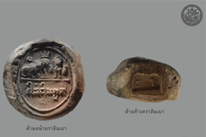 ตราดินเผารูปสัญลักษณ์ทางศาสนาประกอบอักษรจารึก