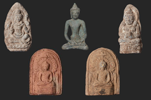 พระพิมพ์พระสาวกมีจารึก “สาริปุตฺโต” จากเจดีย์หมายเลข ๑๑ เมืองโบราณอู่ทอง