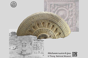 ชิ้นส่วนธรรมจักรศิลา พบที่เมืองโบราณอู่ทอง อำเภออู่ทอง จังหวัดสุพรรณบุรี