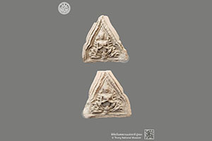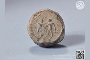 ตราดินเผารูปสัญลักษณ์ทางศาสนาประกอบอักษรจารึก