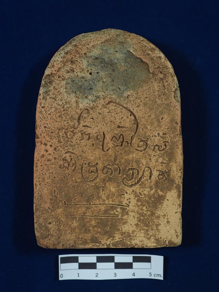 พระพิมพ์ดินเผามีจารึกจากโบราณสถานพุหางนาคหมายเลข ๒