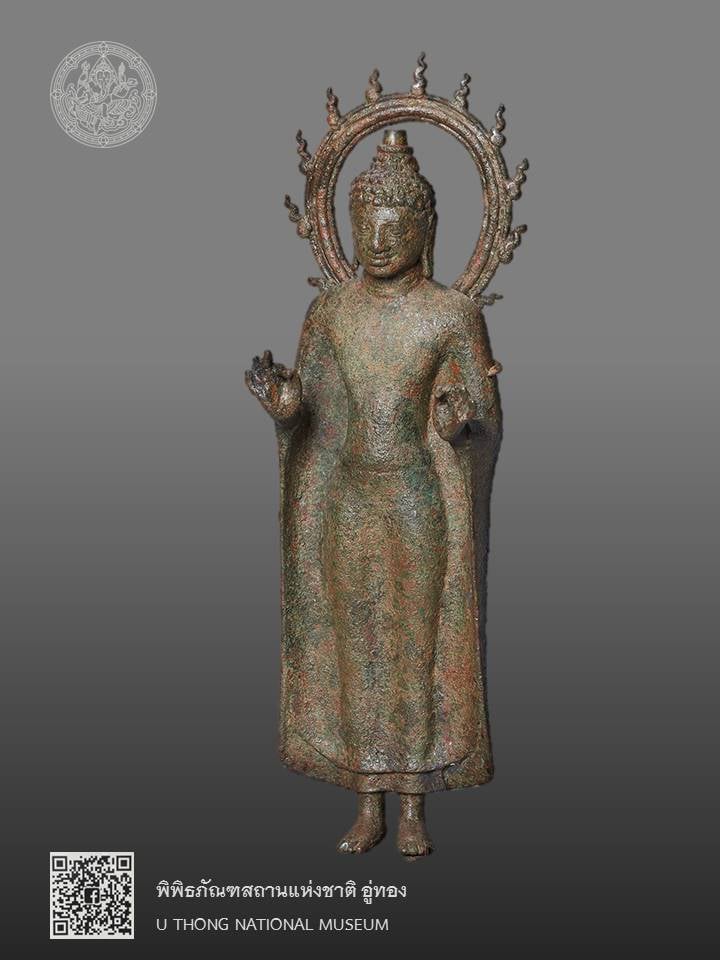 พระพุทธรูปยืนปางแสดงธรรม มีประภามณฑลหลังพระเศียร