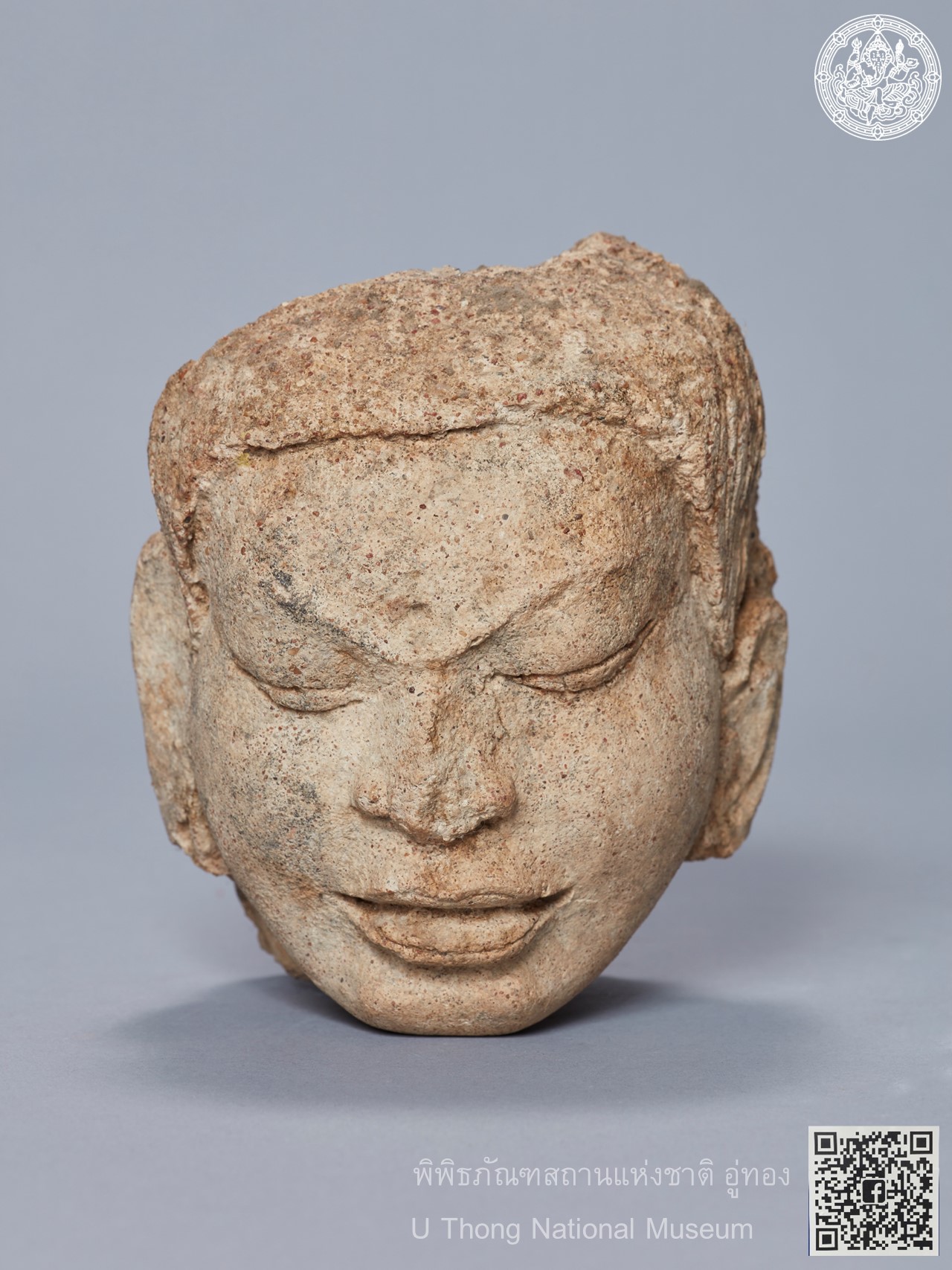 ประติมากรรมปูนปั้นรูปศีรษะบุรุษ ได้จากวัดช่องลม อำเภออู่ทอง จังหวัดสุพรรณบุรี จัดแสดง ณ ห้องอู่ทองศรีทวารวดี พิพิธภัณฑสถานแห่งชาติ อู่ทอง