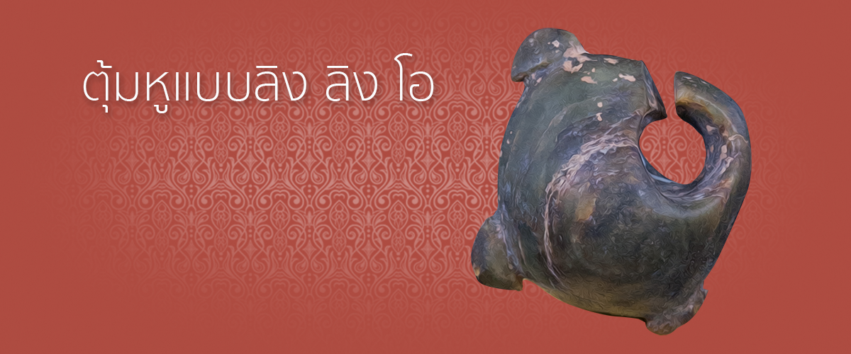 ลักษณะ : ตุ้มหูแบบลิง ลิง โอ ทำจากหินเนปไฟร์ทสีเขียว รูปทรงกึ่งทรงกลม บากด้านบนให้เป็นตะขอสำหรับสวมใส่ใบหู หรือร้อยเชือกแขวน มีปุ่มแหลม 3 ปุ่ม ที่ขอบข้าง ที่ปุ่มหนึ่งมีรอยหักบิ่นเล็กน้อย ตุ้มหูรูปแบบนี้พบเป็นจำนวนมากในแหล่งฝังศพของพวกวัฒนธรรมซาหวิ่นห์ นักโบราณคดีสันนิษฐานว่าตุ้มหูแบบลิง ลิง โอ นี้ถูกนำเข้ามายังดินแดนประเทศไทยโดยการติดต่อค้าขายแลกเปลี่ยนภายในภูมิภาคเอเชียตะวันออกเฉียงใต้
