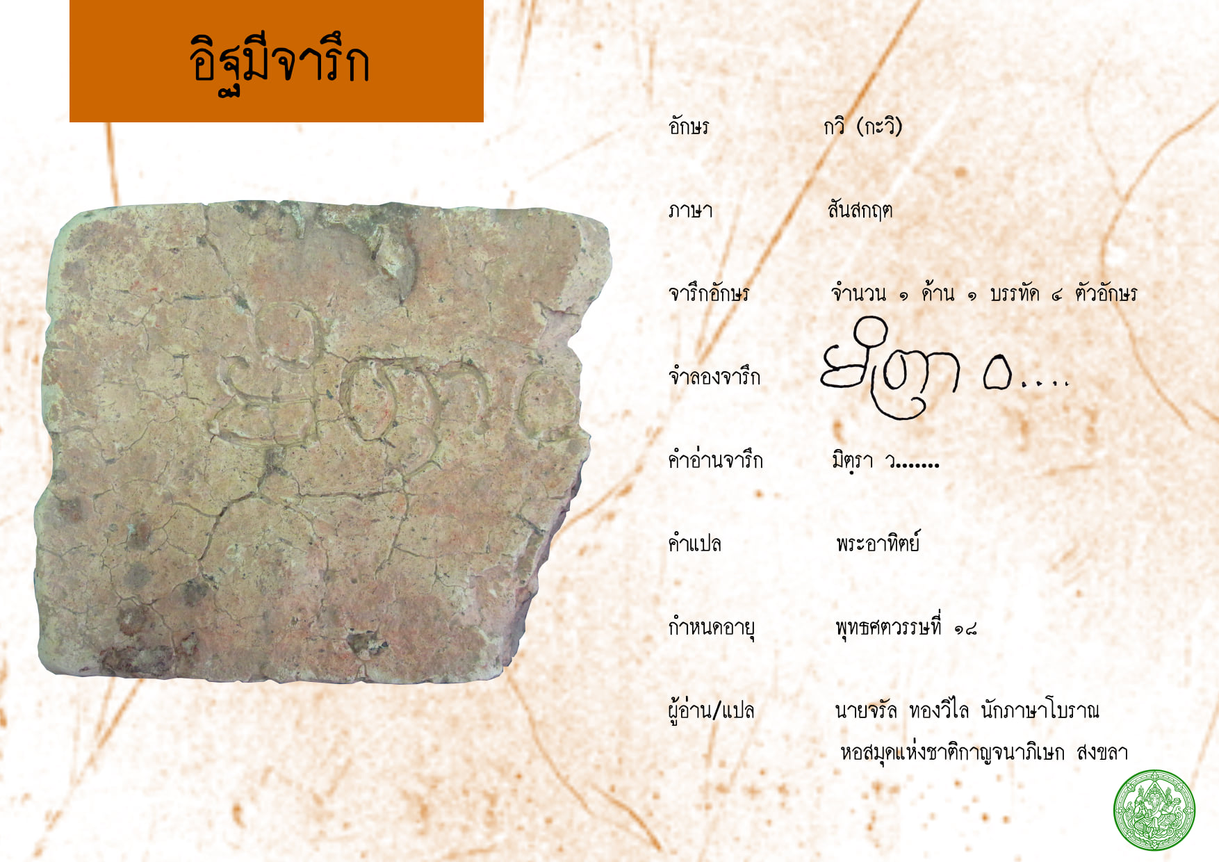 เรียบเรียงโดย นายสารัท ชลอสันติสกุล นักโบราณคดีชำนาญการ สำนักศิลปากรที่ ๑๑ สงขลา