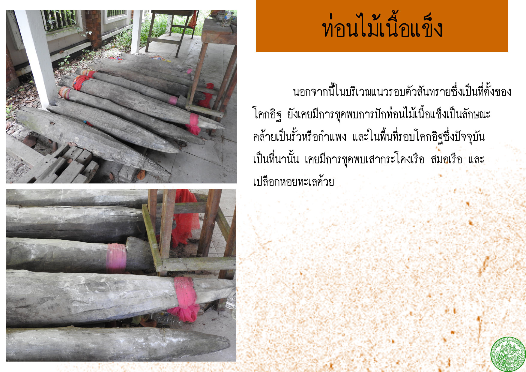 นอกจากนี้ในบริเวณแนวรอบตัวสันทรายซึ่งเป็นที่ตั้งของโคกอิฐ ยังเคยมีการขุดพบการปักท่อนไม้เนื้อแข็งเป็นลักษณะคล้ายเป็นรั้วหรือกำแพง และในพื้นที่รอบโคกอิฐซึ่งปัจจุบันเป็นที่นานั้น เคยมีการขุดพบเสากระโดงเรือ สมอเรือ และเปลือกหอยทะเลด้วย