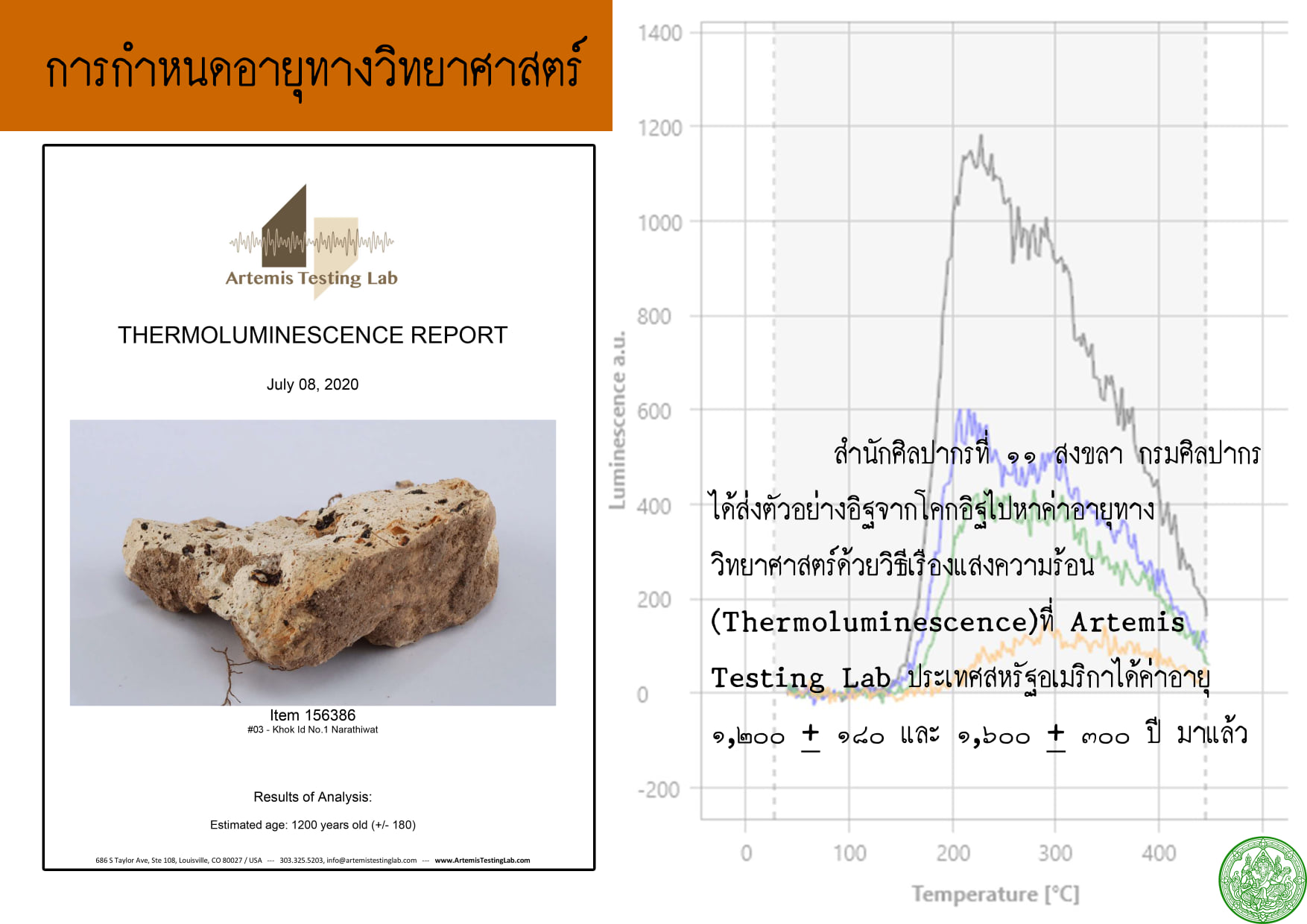 สำนักศิลปากรที่ ๑๑ สงขลา กรมศิลปากร ได้ส่งตัวอย่างอิฐจากโคกอิฐไปหาค่าอายุทางวิทยาศาสตร์ด้วยวิธีเรืองแสงความร้อน(Thermoluminescence)ที่ Artemis Testing Lab ประเทศสหรัฐอเมริกาได้ค่าอายุ ๑,๒๐๐ ± ๑๘๐ และ ๑,๖๐๐ ± ๓๐๐ ปี มาแล้ว