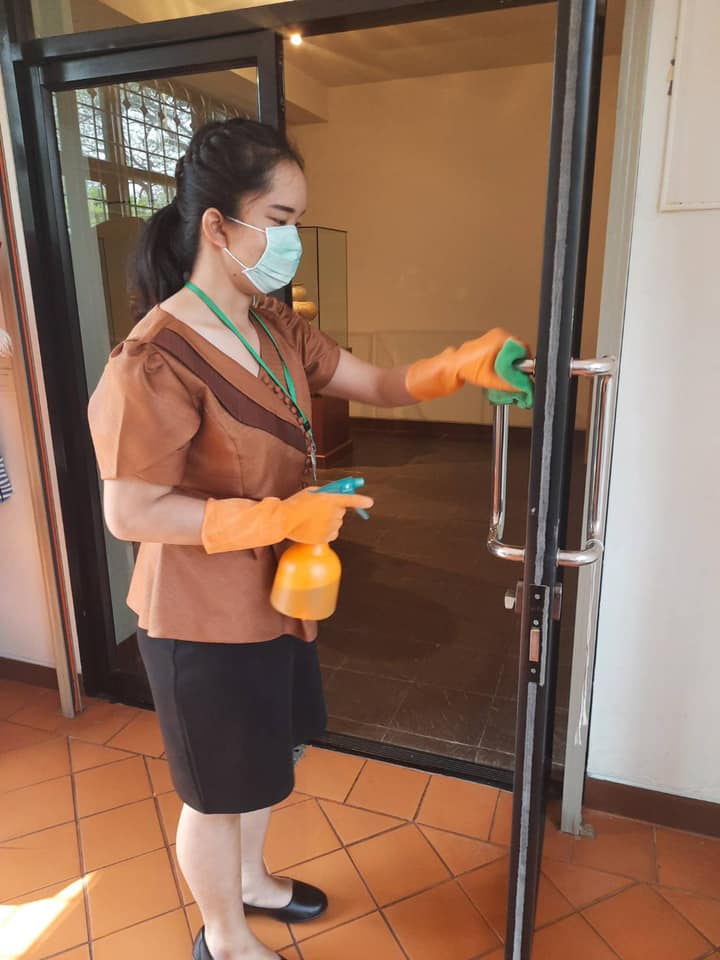 และมีการทำความสะอาดพื้นที่ทุกสองชั่วโมงตามมาตรการป้องกันการแพร่ระบาดของโควิด-19