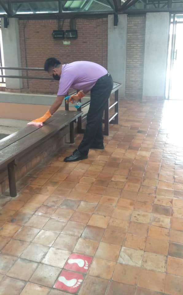 และมีการทำความสะอาดพื้นที่ทุกสองชั่วโมงตามมาตรการป้องกันการแพร่ระบาดของโควิด-19