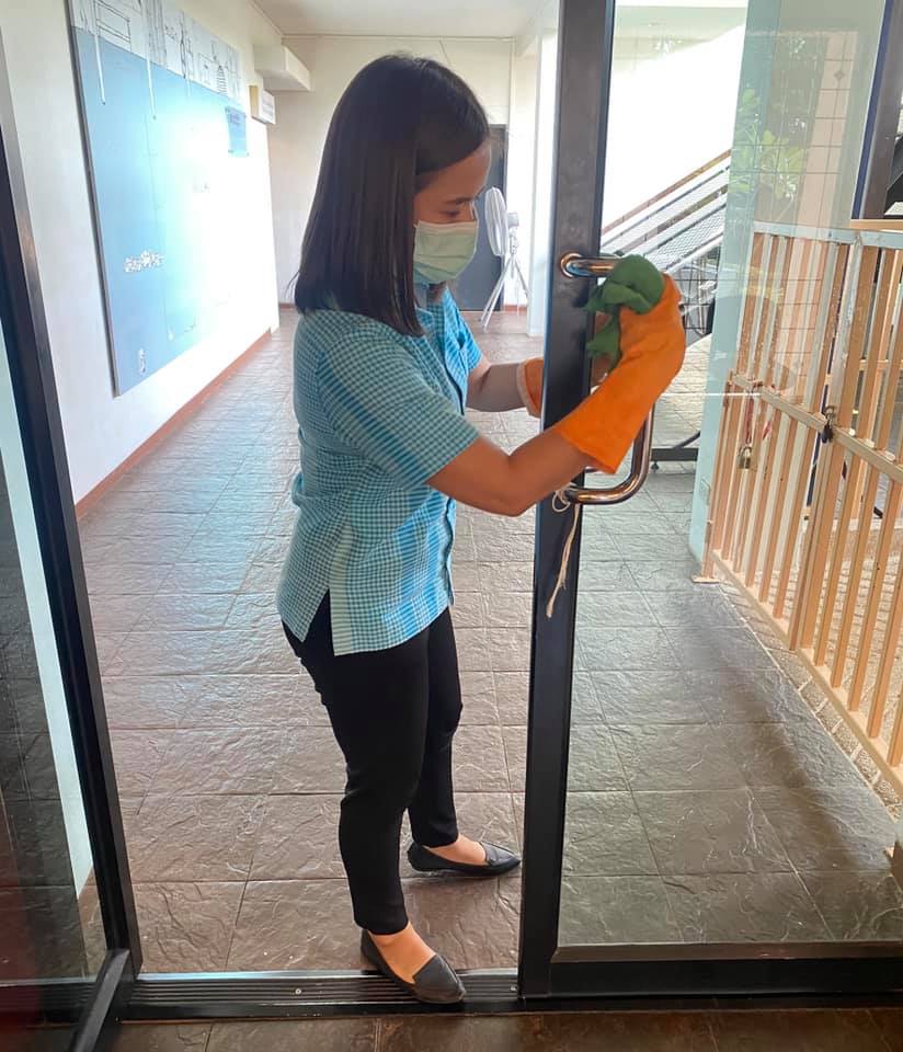 และมีการทำความสะอาดพื้นที่ทุกสองชั่วโมงตามมาตรการป้องกันการแพร่ระบาดของโควิด-19