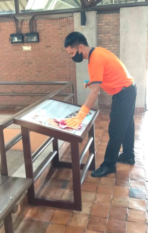 และมีการทำความสะอาดพื้นที่ทุกสองชั่วโมงตามมาตรการป้องกันการแพร่ระบาดของโควิด-19
