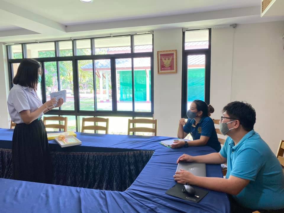นางสาวกัญญารัตน์ ภาระไพร นักศึกษาฝึกประสบการณ์ จากสาขาวิชาภาษาอังกฤษ คณะมนุษย์ศาสตร์และสังคมศาสตร์ มหาวิทยาลัยราชภัฏเลย จังหวัดเลย นำเสนอโครงการผลิตสื่อส่งเสริมการเรียนรู้ภาษาอังกฤษภายในพิพิธภัณฑสถานแห่งชาติ บ้านเชียง “Museum Bingo”