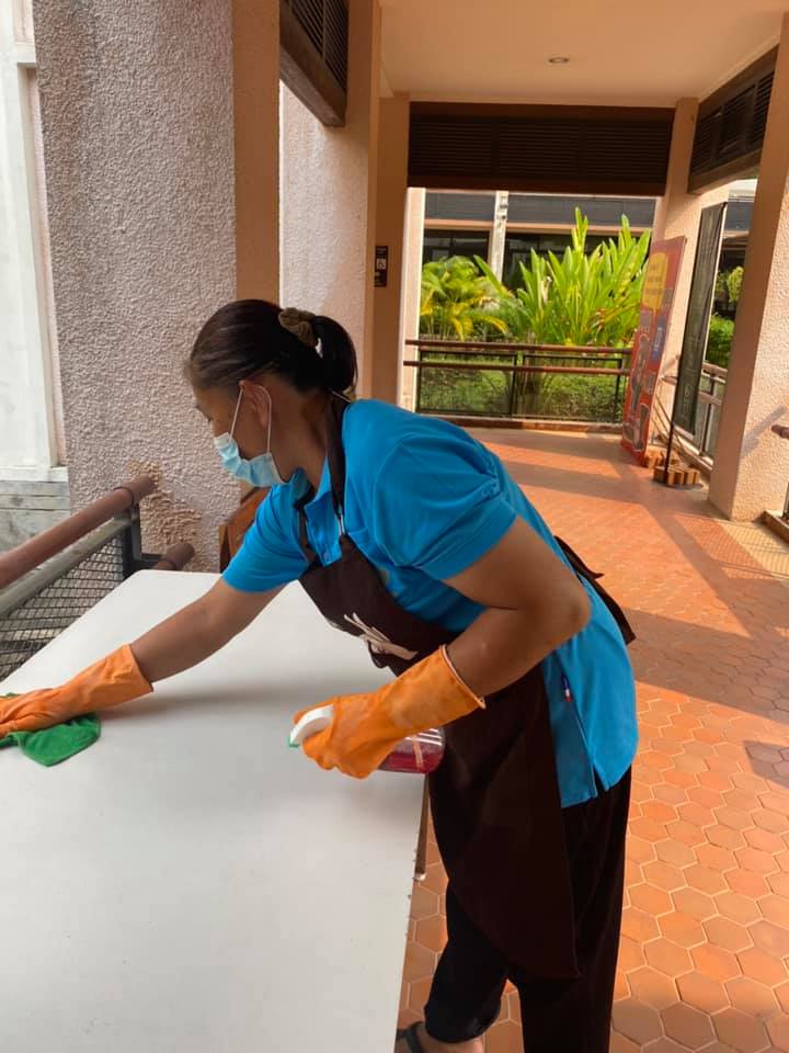 และมีการทำความสะอาดพื้นที่ทุกสองชั่วโมงตามมาตรการป้องกันการแพร่ระบาดของโควิด-19