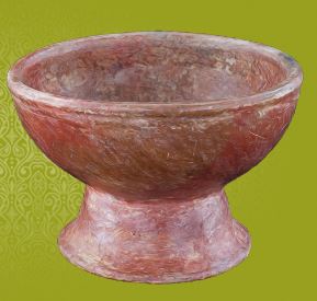 ลักษณะ : ภาชนะดินเผา มีเชิง ตกแต่งด้วยการชุบสีแดง และขัดมันทั้งใบ