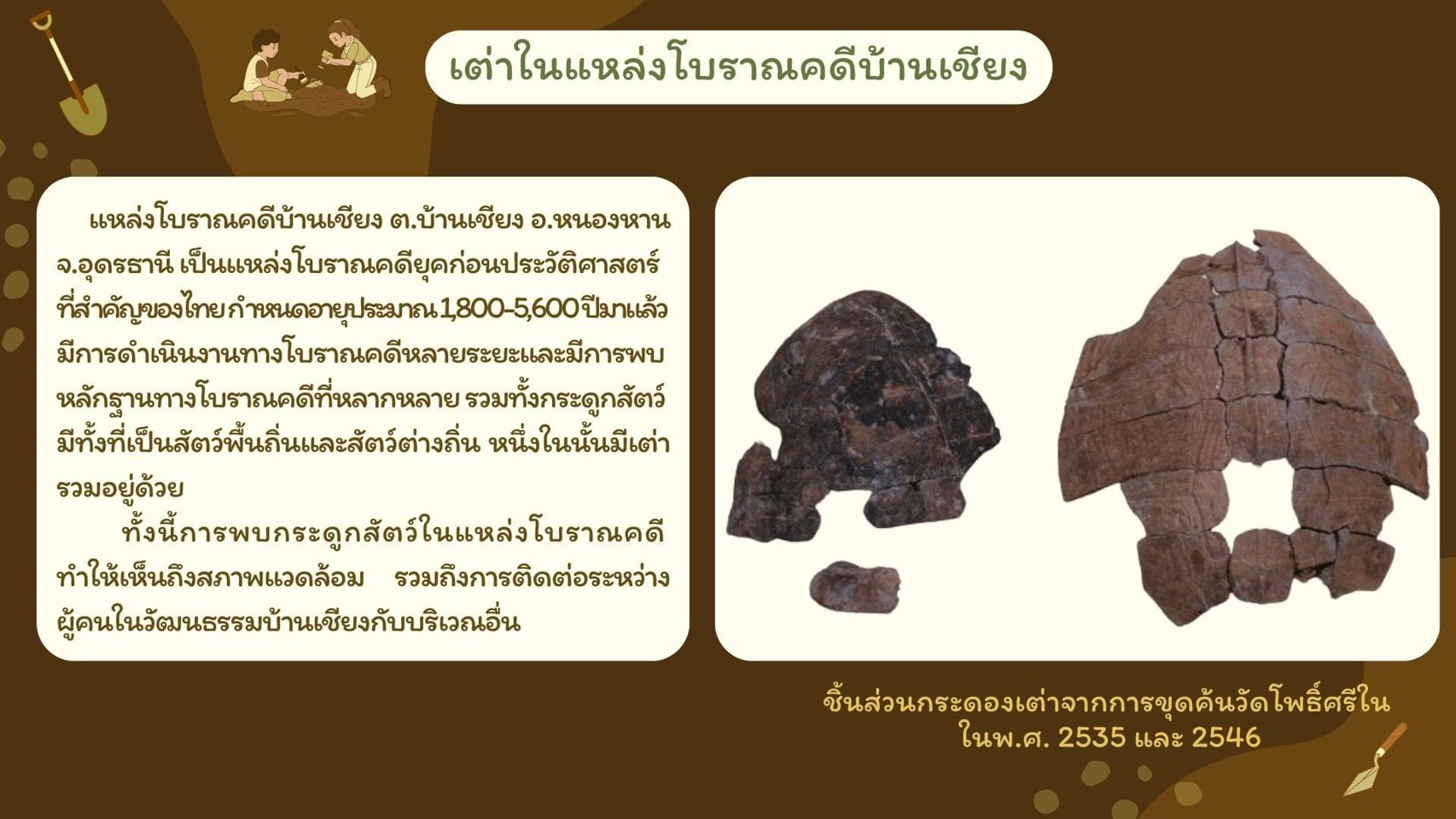 ขอเสนอองค์ความรู้ เรื่อง ต.เต่า พันปี ณ แหล่งโบราณคดี บ้านเชียง โดยนางสาวมธุรดา ประสิทธิ์วงษ์ ภัณฑารักษ์ปฏิบัติการ พิพิธภัณสถานแห่งชาติ บ้านเชียง