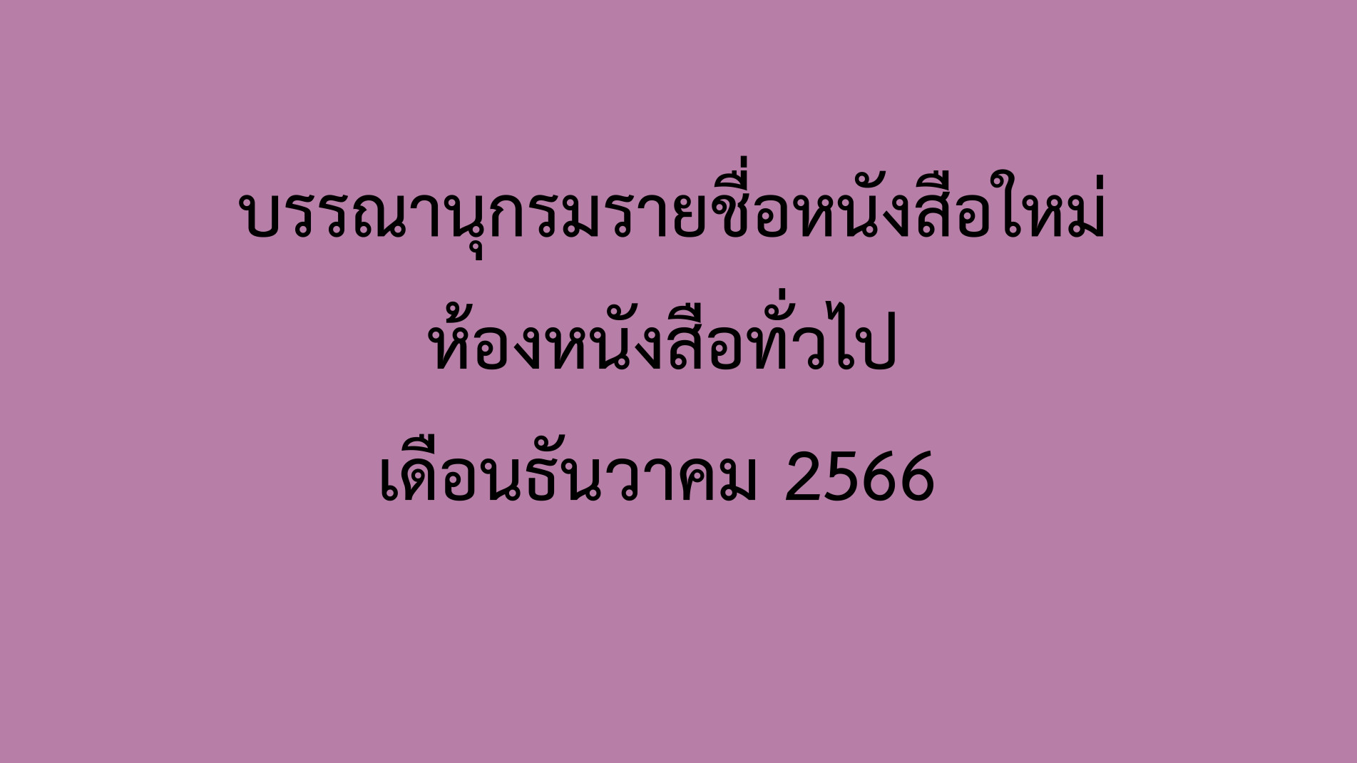 บรรณานุกรมรายชื่อหนังสือใหม่ ห้องหนังสือทั่วไป ประจำเดือนธันวาคม 2568