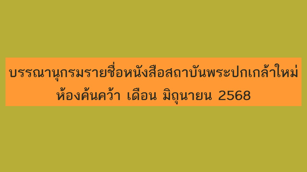 บรรณานุกรมรายชื่อหนังสือใหม่ ห้องหนังสือทั่วไป ประจำเดือนพฤศจิกายน 2568