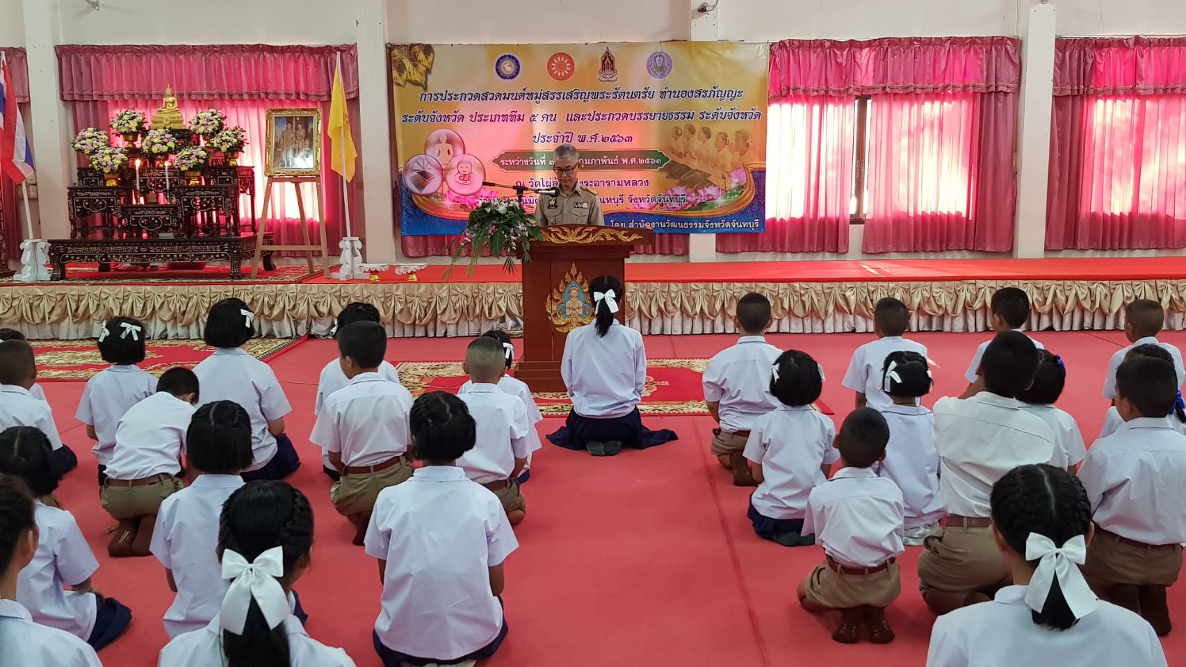 นางสาวเมษา ครุปิติ รักษาการในตำแหน่งผู้อำนวยการหอสมุดแห่งชาติฯ จันทบุรี และนางสาวสมใจ สาแมว เจ้าพนักงานธุรการชำนาญงาน เข้าร่วมในพิธีเปิดงานการประกวดสวดมนต์หมู่สรรเสริญพระรัตนตรัย ทำนองสรภัญญะ ระดับจังหวัด ประเภททีม 5 คน และประกวดบรรยายธรรม ระดับจังหวัด ปร