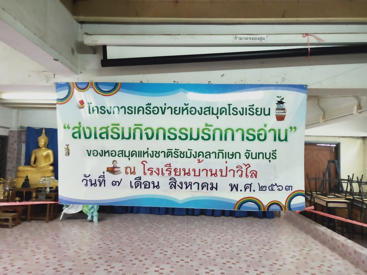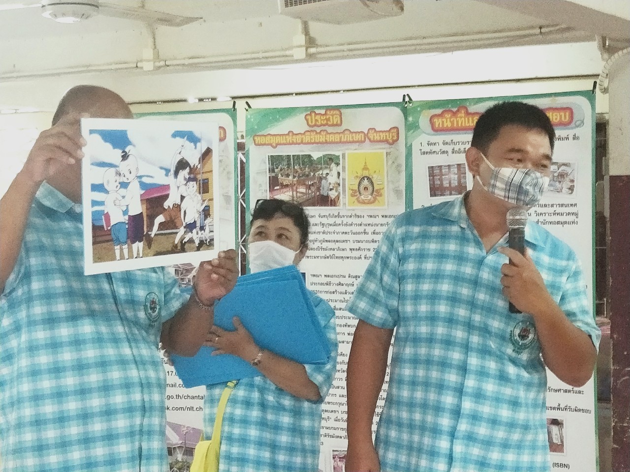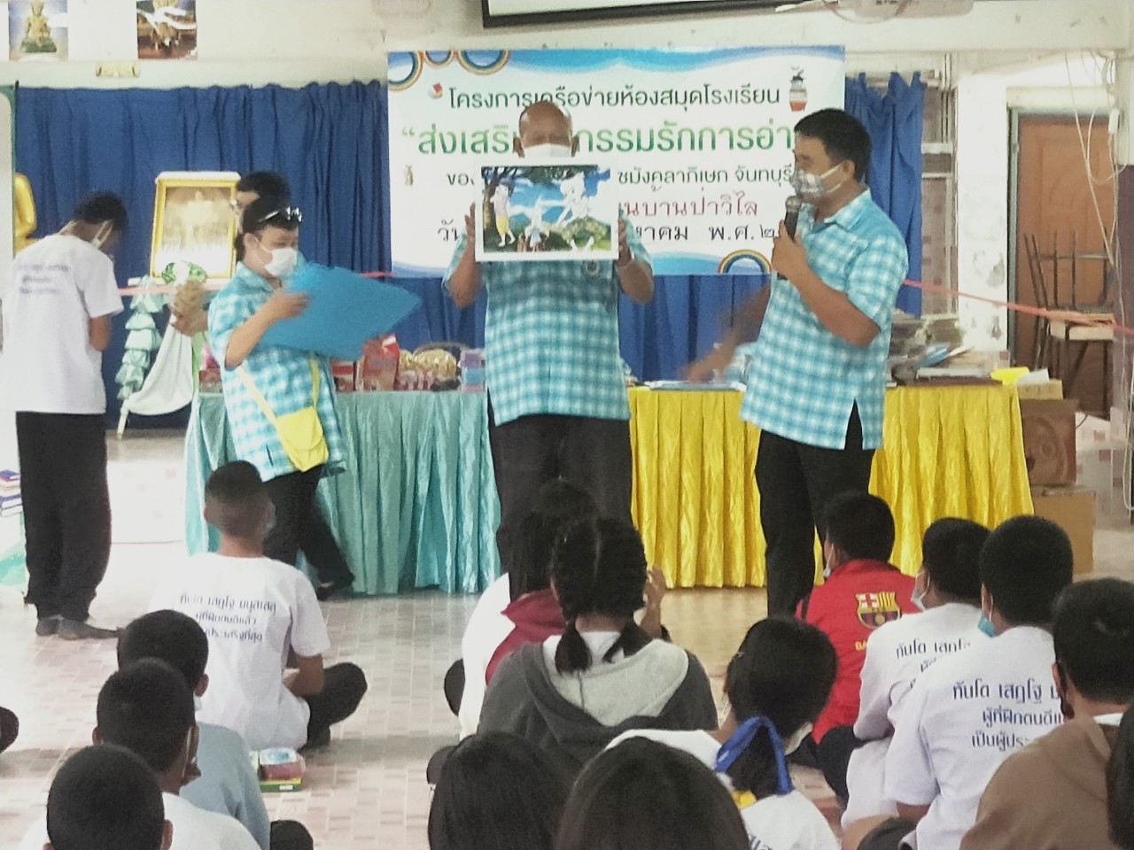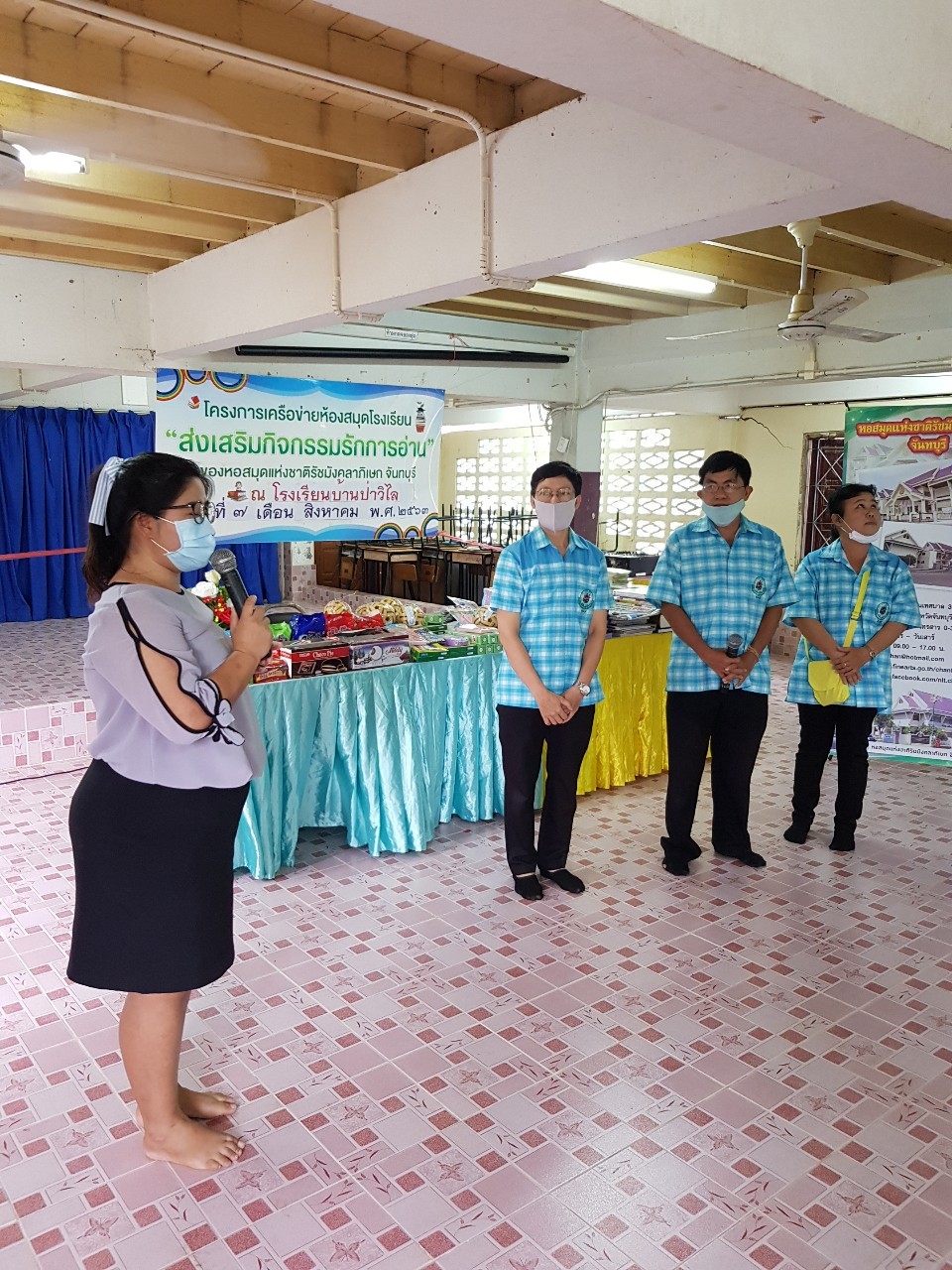 วันศุกร์ที่ 7 สิงหาคม 2563 นางสาวเมษา ครุปิติ บรรณารักษ์ชำนาญการ รักษาการในตำแหน่งผู้อำนวยการหอสมุดแห่งชาติฯ จันทบุรี พร้อมด้วย นายประพนธ์ ร...อบรู้ นักวิชาการโสตทัศนศึกษาชำนาญการ นางกรองแก้ว เปเหล่าดา บรรณารักษ์ชำนาญการ นายสุรศักดิ์ บัวเลียง เจ้าพนักงานห้องสมุดปฏิบัติงาน และนายมานะ กองกูต พนักงานขับรถยนต์ ออกไปจัดกิจกรรมส่งเสริมการอ่าน โครงการเครือข่ายห้องสมุดโรงเรียน ณ โรงเรียนบ้านป่าวิไล ต.คลองใหญ่ อ.โป่งน้ำร้อน จ.จันทบุรี โดยแนะนำให้รู้จักหอสมุด แนะนำสารนิเทศต่างๆ กิจกรรมถามตอบปัญหาอะไรเอ่ย ทายภาพสุภาษิต-คำพังเพย กิจกรรมนันทนาการ ( เตรียมความพร้อม "รหัสปรบมือ" ฝึกท่าทางประกอบการทำมือ เพลงปรบมือ" เพลง"แก้วกะลาขันโอ่ง" และเพลง "ส้มตำมะละกอส้มตำ" เต้นเพลง"ต๊กแก" ) และแข่่งขันเต้นเพลง "ปี้จนป่น" และเพลง "เลิกคุยทั้งอำเภอ" แจกหนังสือส่งเสริมการอ่านแทนการนำหนังสือไปให้อ่าน เพื่อหลีกเลียงการสัมผัสป้องกันโรคไวรัส โควิด-19 โดย ผู้อำนวยการโรงเรียน และคณะครู ให้การต้อนรับ มีนักเรียนชั้น ม.1 - 3 ร่วมกิจกรรม จำนวน 47 คน