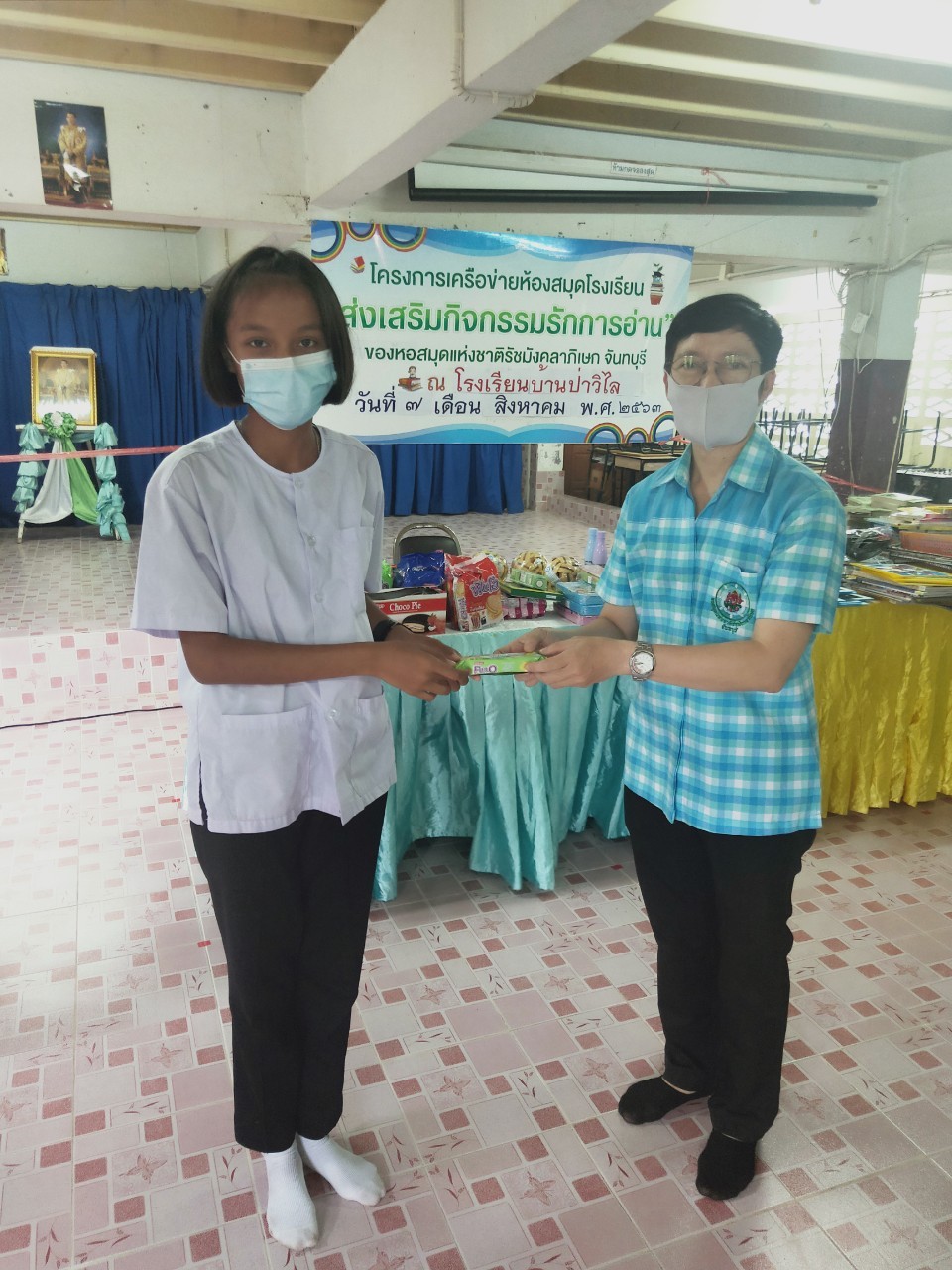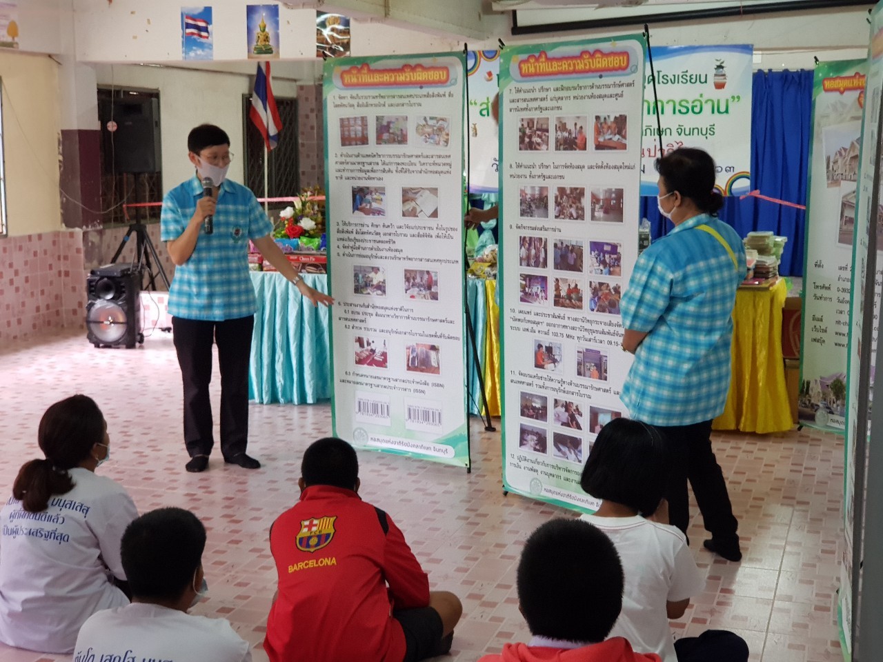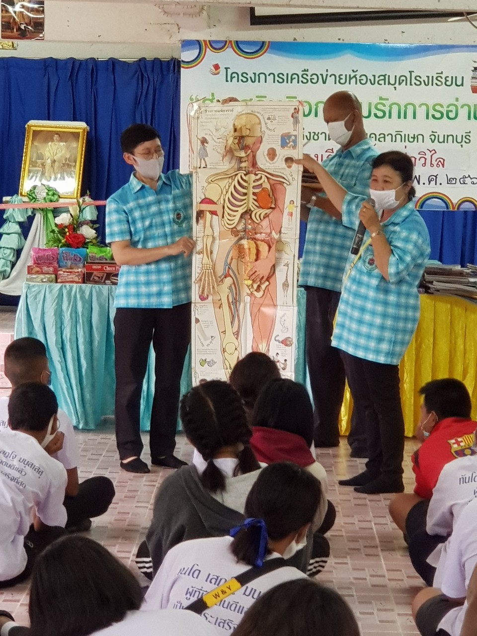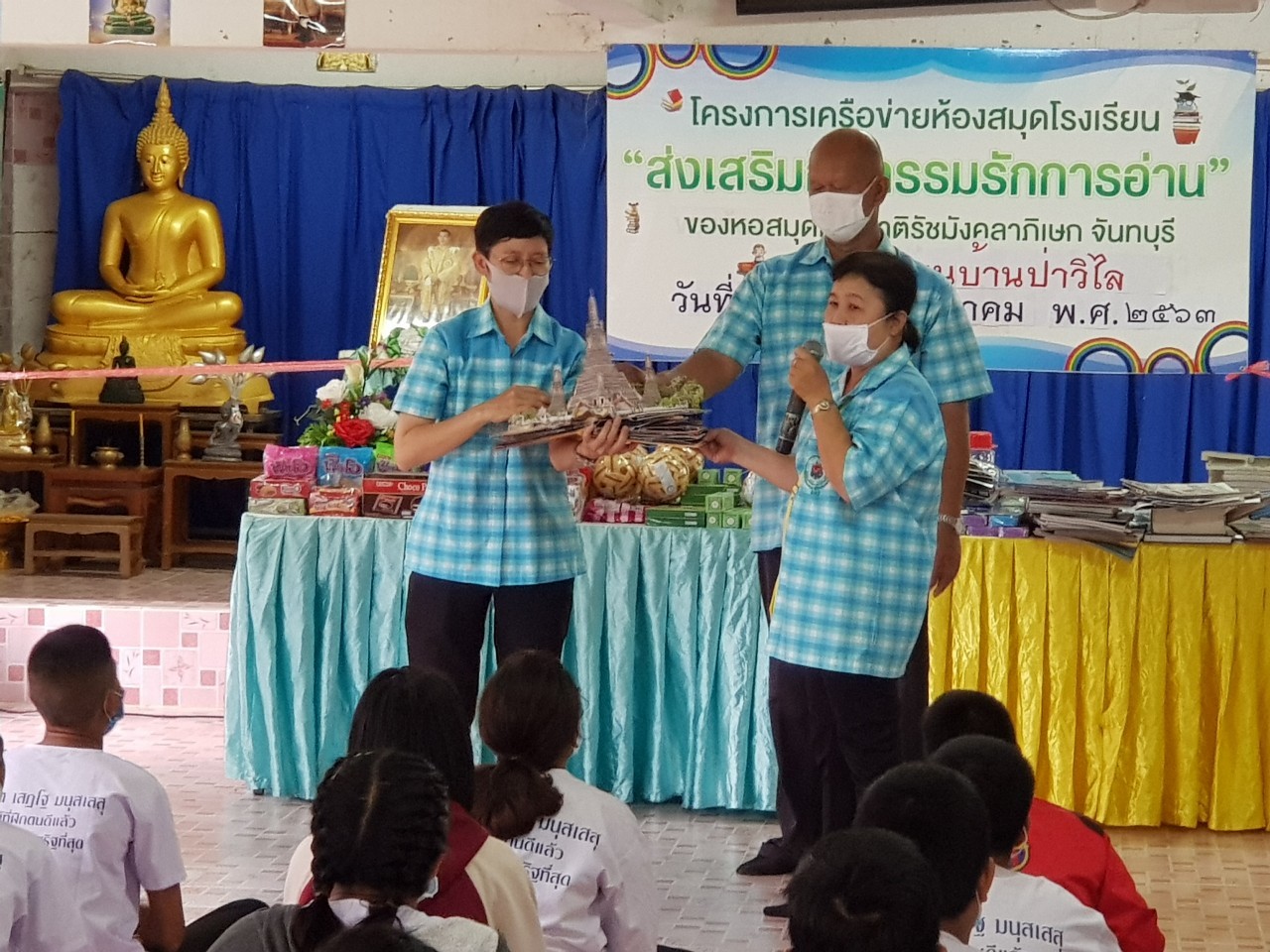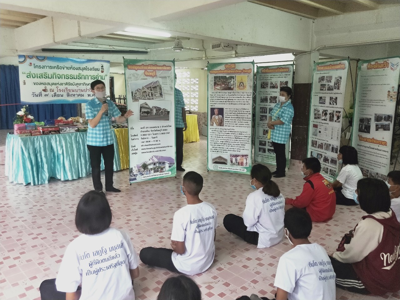 วันศุกร์ที่ 7 สิงหาคม 2563 นางสาวเมษา ครุปิติ บรรณารักษ์ชำนาญการ รักษาการในตำแหน่งผู้อำนวยการหอสมุดแห่งชาติฯ จันทบุรี พร้อมด้วย นายประพนธ์ ร...อบรู้ นักวิชาการโสตทัศนศึกษาชำนาญการ นางกรองแก้ว เปเหล่าดา บรรณารักษ์ชำนาญการ นายสุรศักดิ์ บัวเลียง เจ้าพนักงานห้องสมุดปฏิบัติงาน และนายมานะ กองกูต พนักงานขับรถยนต์ ออกไปจัดกิจกรรมส่งเสริมการอ่าน โครงการเครือข่ายห้องสมุดโรงเรียน ณ โรงเรียนบ้านป่าวิไล ต.คลองใหญ่ อ.โป่งน้ำร้อน จ.จันทบุรี โดยแนะนำให้รู้จักหอสมุด แนะนำสารนิเทศต่างๆ กิจกรรมถามตอบปัญหาอะไรเอ่ย ทายภาพสุภาษิต-คำพังเพย กิจกรรมนันทนาการ ( เตรียมความพร้อม "รหัสปรบมือ" ฝึกท่าทางประกอบการทำมือ เพลงปรบมือ" เพลง"แก้วกะลาขันโอ่ง" และเพลง "ส้มตำมะละกอส้มตำ" เต้นเพลง"ต๊กแก" ) และแข่่งขันเต้นเพลง "ปี้จนป่น" และเพลง "เลิกคุยทั้งอำเภอ" แจกหนังสือส่งเสริมการอ่านแทนการนำหนังสือไปให้อ่าน เพื่อหลีกเลียงการสัมผัสป้องกันโรคไวรัส โควิด-19 โดย ผู้อำนวยการโรงเรียน และคณะครู ให้การต้อนรับ มีนักเรียนชั้น ม.1 - 3 ร่วมกิจกรรม จำนวน 47 คน