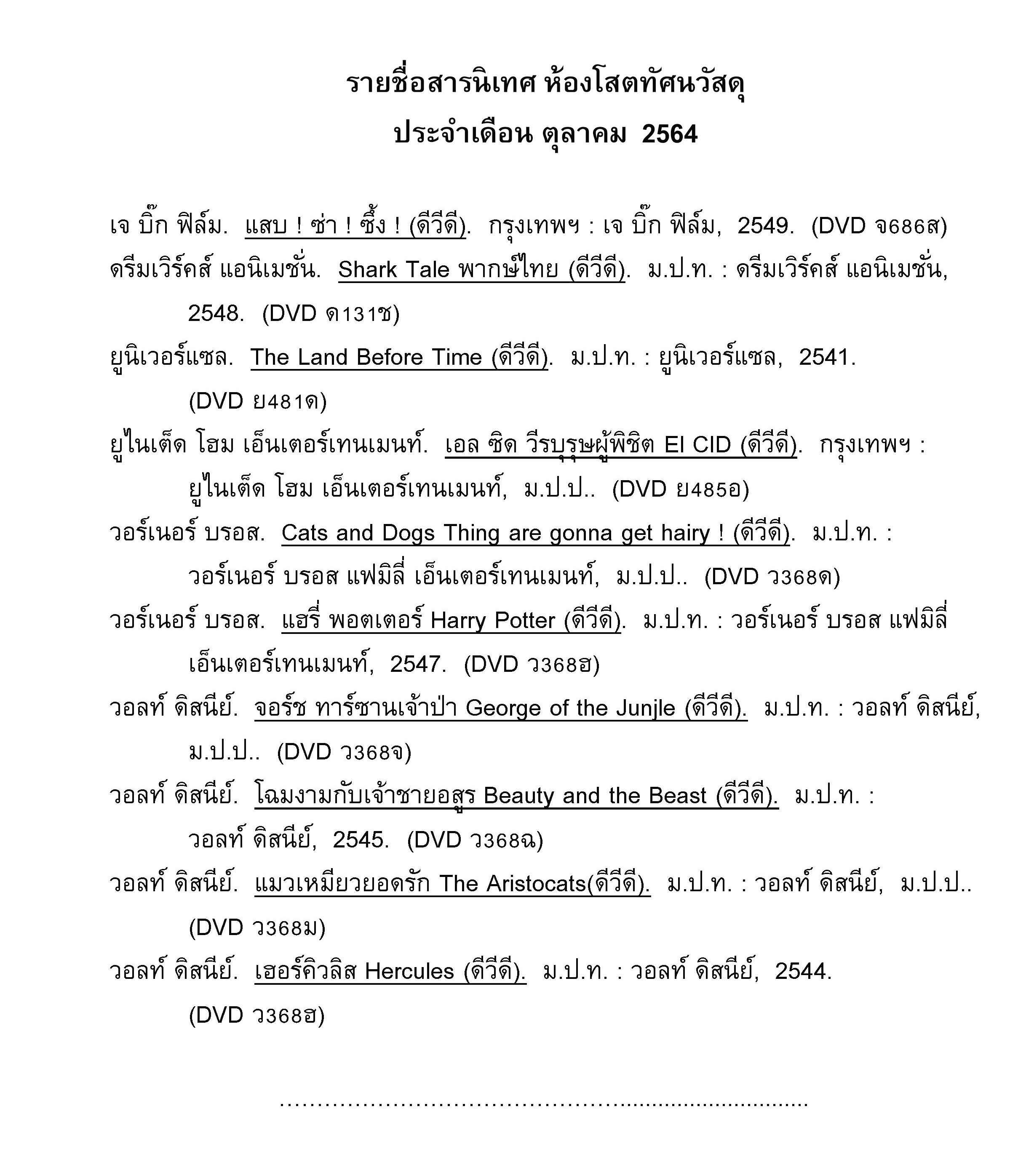 รายชื่อสารนิเทศโสตทัศนวัสดุ ประจำเดือน ตุลาคม 2564