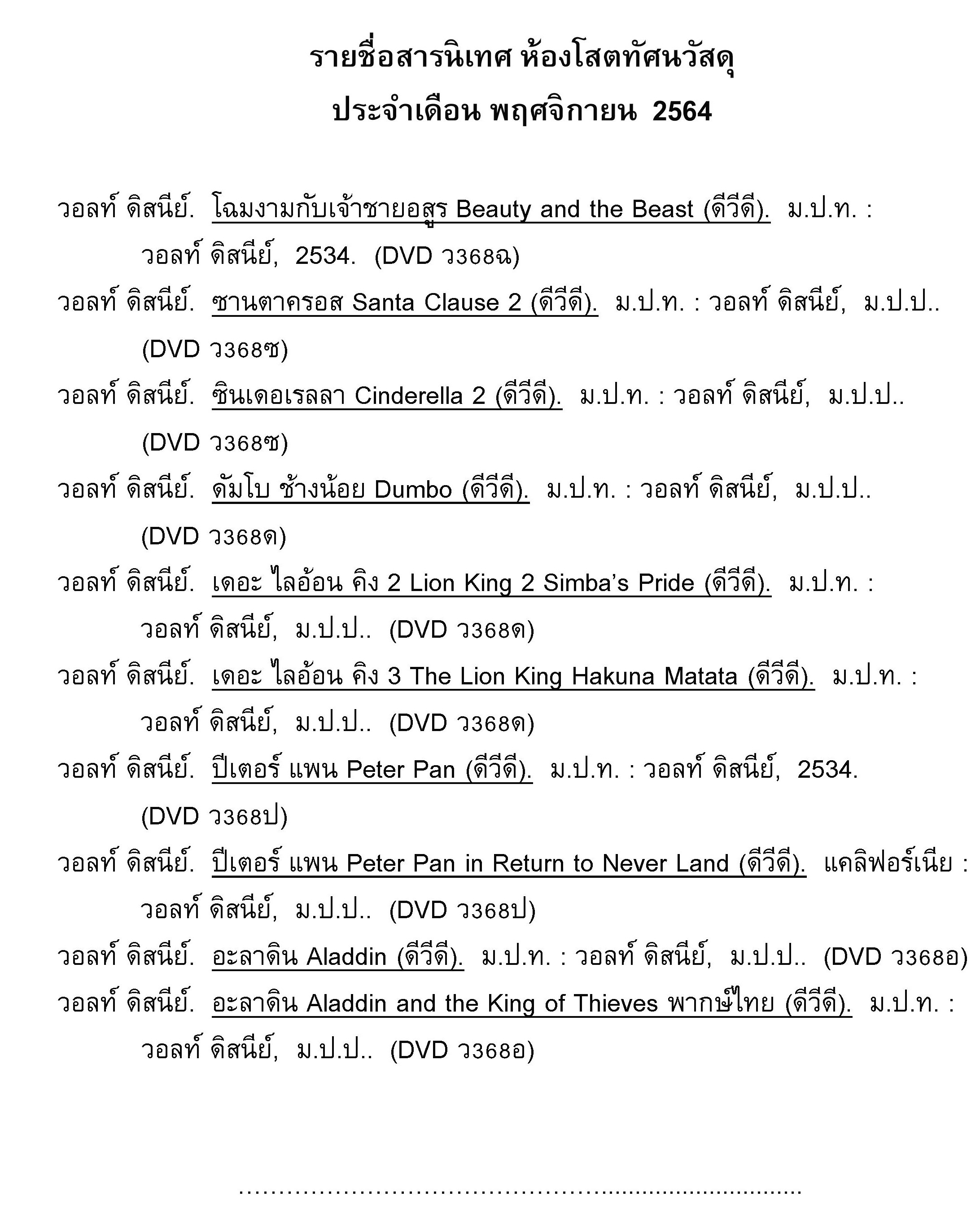 รายชื่อสารนิเทศโสตทัศนวัสดุ ประจำเดือน พฤศจิกายน 2564