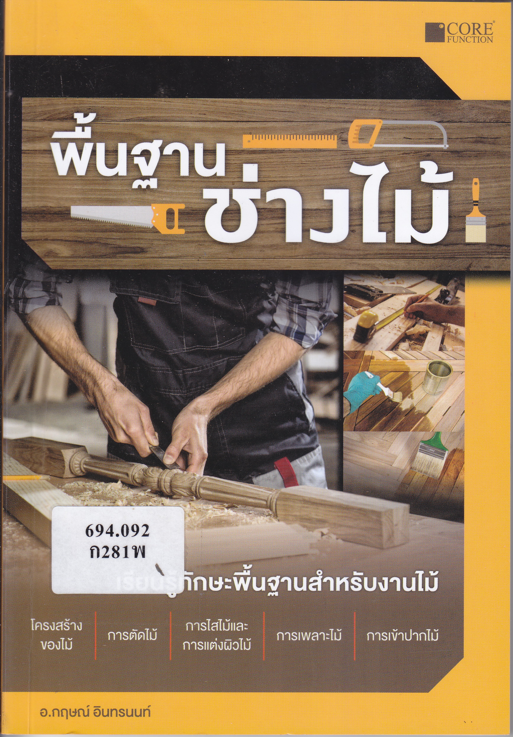 กฤษณ์ อินทรนนท์. พื้นฐานช่างไม้. นนทบุรี: คอร์ฟังก์ชั่น, 2563. 129 หน้า. ภาพประกอบ. 125 บาท.