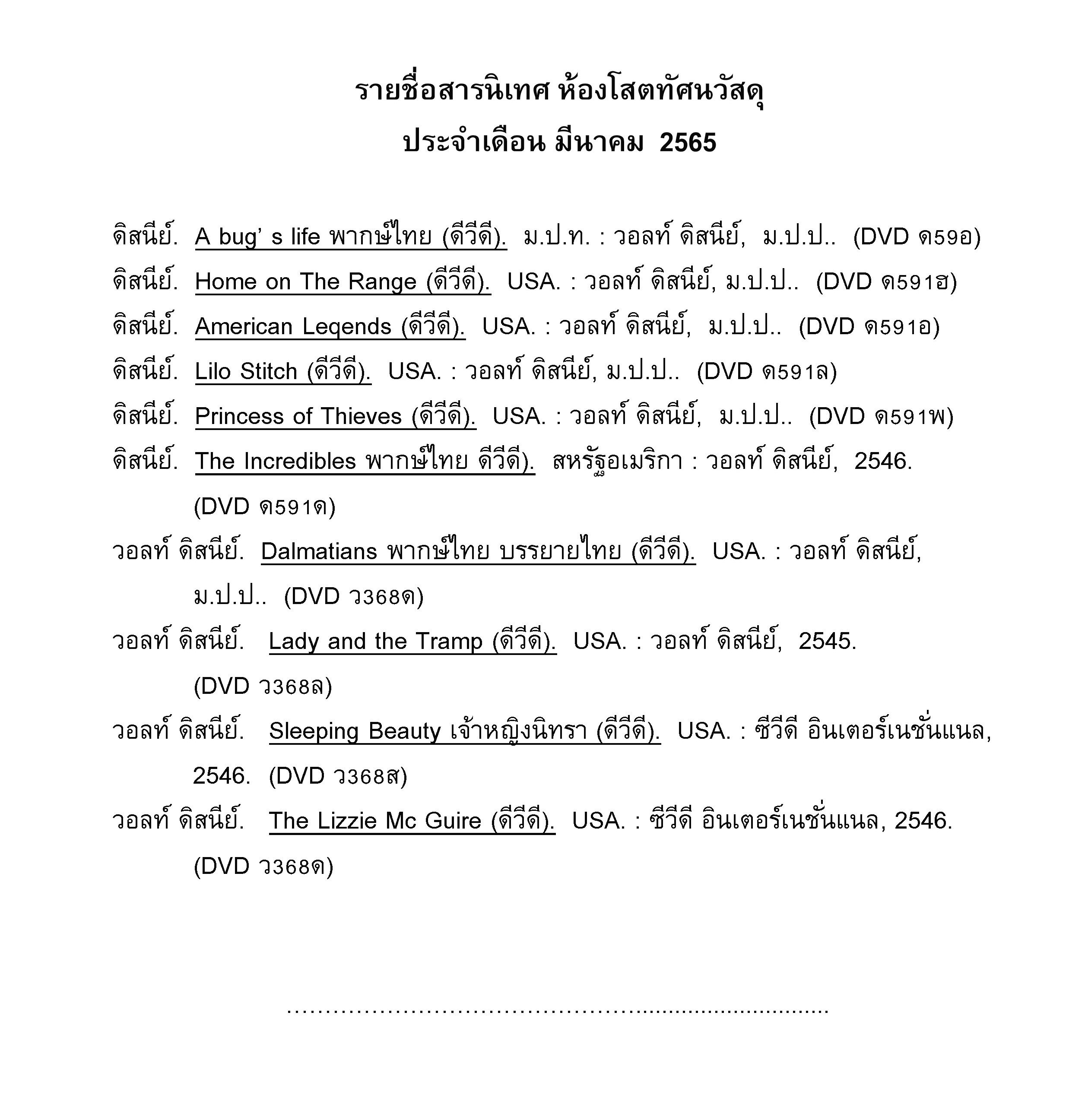 รายชื่อสารนิเทศโสตทัศนวัสดุ ประจำเดือน มีนาคม 2565