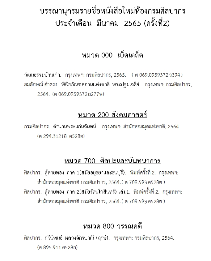 รายชื่อหนังสือใหม่ห้องกรมศิลปากร ประจำเดือน มีนาคม2565 (ครั้งที่ 2)