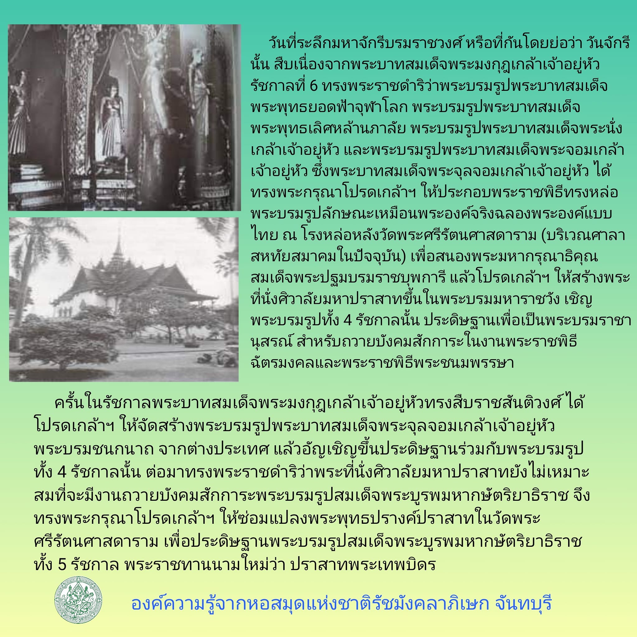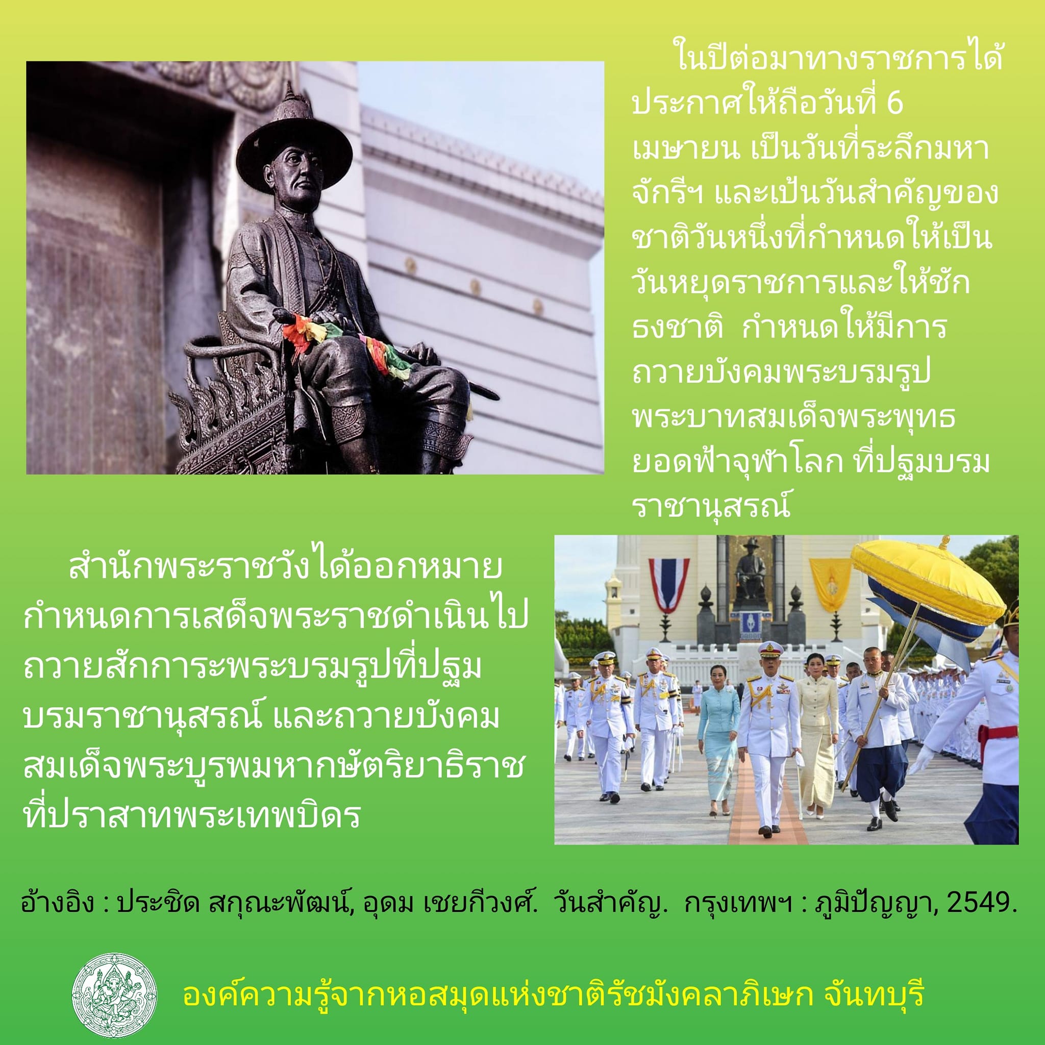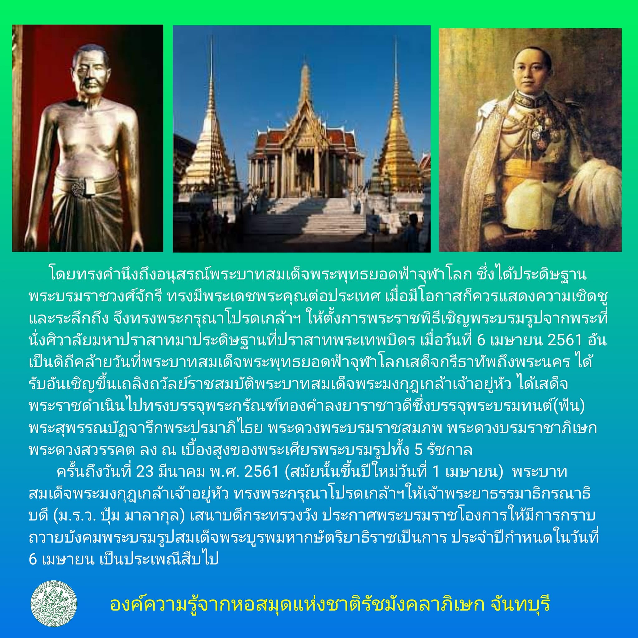 เรื่อง "วันพระบาทสมเด็จพระพุทธยอดฟ้าจุฬาโลกมหาราช และ วันที่ระลึกมหาจักรีบรมราชวงศ์ 6 เมษายน”