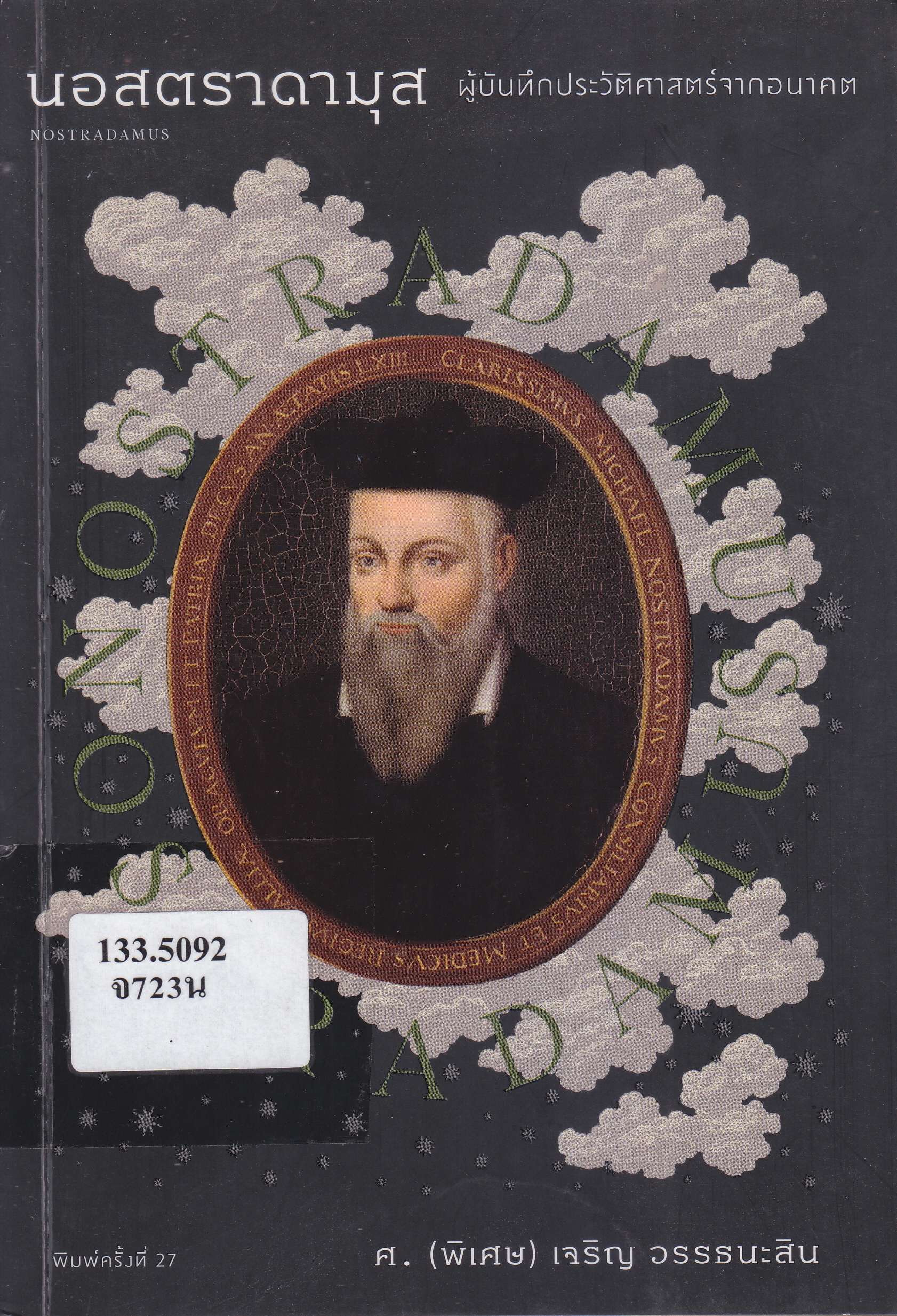 เจริญ วรรธนะสิน. นอสตราดามุส ผู้บันทึกประวัติศาสตร์จากอนาคต. พิมพ์ครั้งที่ 27. กรุงเทพฯ : แสงดาว, 2563. 412 หน้า. ภาพประกอบ. 430 บาท.