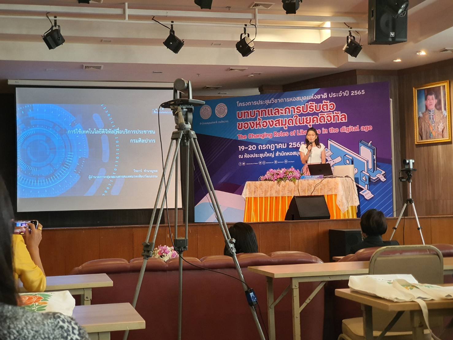On July 19, 2022 at 9:00 a.m., Mr. Kittiphan Pansuwan, Director-General of the Fine Arts Department Presided over the opening ceremony of the National Library of Congress 2022 project titled “Role and Adaptation of Libraries in the Digital Age”, The Changing Roles of Libraries in the digital age, with Ms. Wassana Ngamduangjai, Director of the National Library of Thailand, delivered a report at the main conference room. National Library The meeting was attended by librarians and staff of the central and provincial libraries to listen to lectures from speakers at the main conference room. the National Library of Thailand on 19 – 20 July 2022. In this regard, Ms. Maesa Krupiti Librarian Chamnan Acting in the position of Director of the Rajamangalaphisek National Library, Chanthaburi also participated in the National Library of Congress academic project this time.