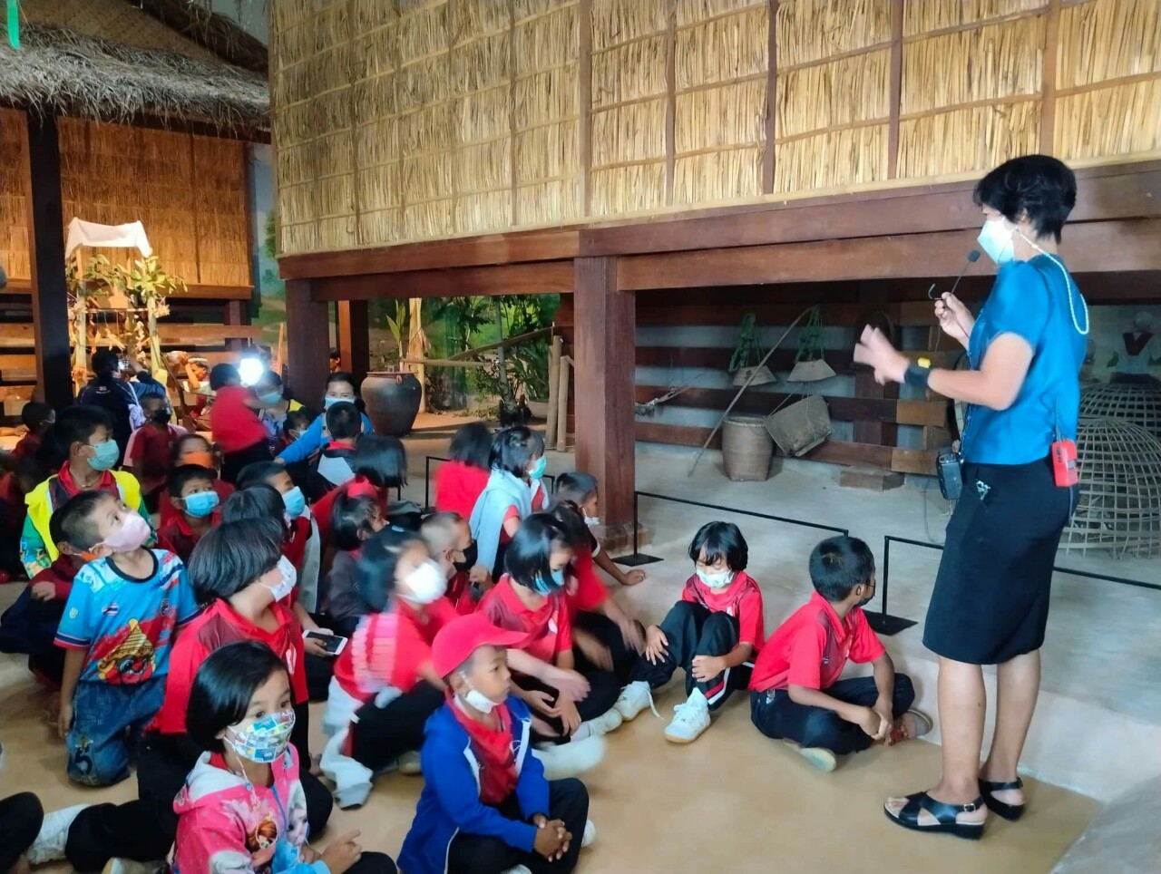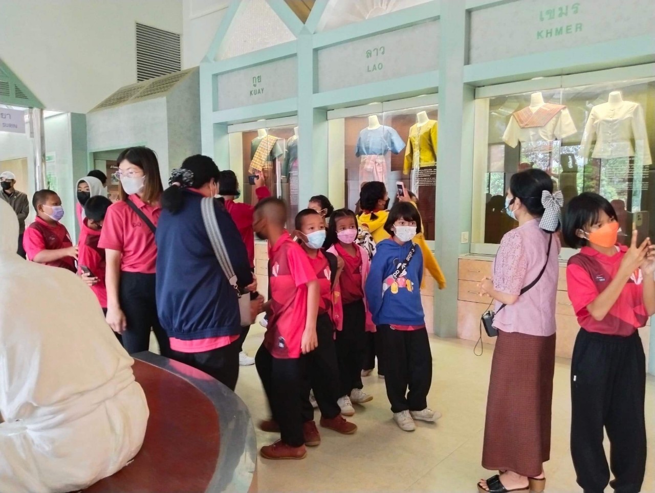 วันศุกร์ที่ ๒๖ สิงหาคม พ.ศ. ๒๕๖๕ เวลา ๑๓.๐๐ น. น้องๆ นักเรียนชั้นอนุบาลถึงชั้นประถมศึกษาที่ ๖ โรงเรียนสตรีวิทยาสมาคม บ้านขยอง ตำบลตาตุม อำเภอสังขะ จังหวัดสุรินทร์ เข้าชมนิทรรศการพิพิธภัณฑสถานแห่งชาติ สุรินทร์ โดยแบ่งการเข้าชมออกเป็น ๒ กลุ่ม เพื่อป้องกันการแพร่ระบาดของเชื้อโควิด ๑๙ มีนางสาวอภิญญา สุขใหญ่ และนางถนอม หลวงกลาง พนักงานประจำพิพิธภัณฑ์ เป็นผู้บรรยายนำชม