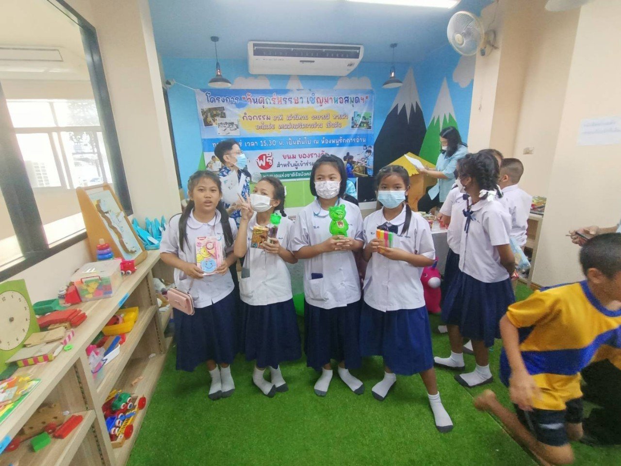 มีของเล่น ของรางวัลและขนมแจกให้กับผู้ร่วมกิจกรรม มีเด็กนักเรียน อายุ 7-11 ปี เข้าร่วมกิจกรรมรวม 29 คน