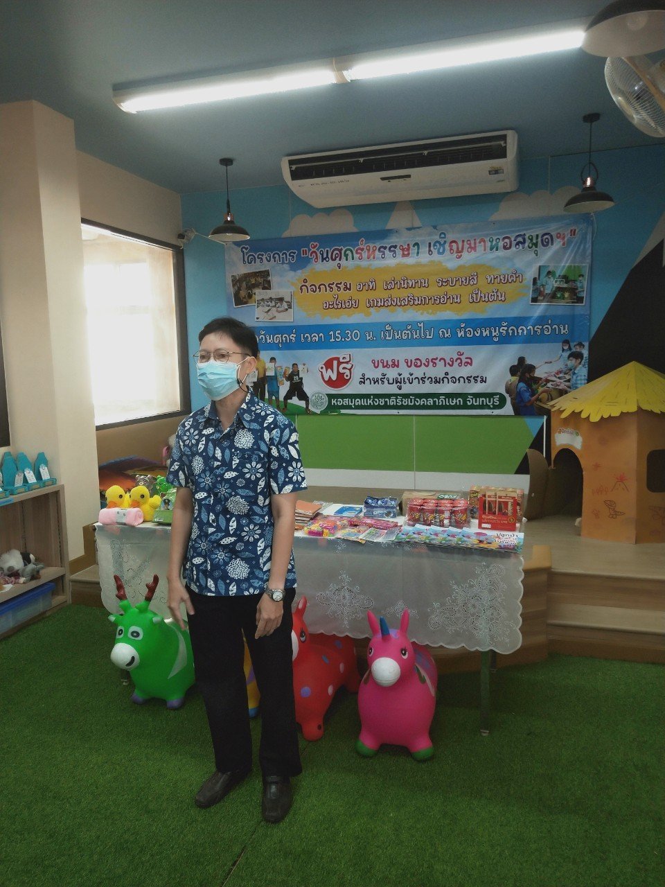 วันศุกร์ที่ 4 พฤศจิกายน 2565 นางสาวเมษา ครุปิติ บรรณารักษ์ชำนาญการ รักษาการในตำแหน่งผู้อำนวยการหอสมุดแห่งชาติรัชมังคลาภิเษก จันทบุรี นำทีมเจ้าหน้าที่ จัดกิจกรรมส่งเสริมการอ่าน "วันศุกร์หรรษา เชิญมาหอสมุด" ณ ห้องหนูรักการอ่าน หอสมุดแห่งชาติรัชมังคลาภิเษก จันทบุรี